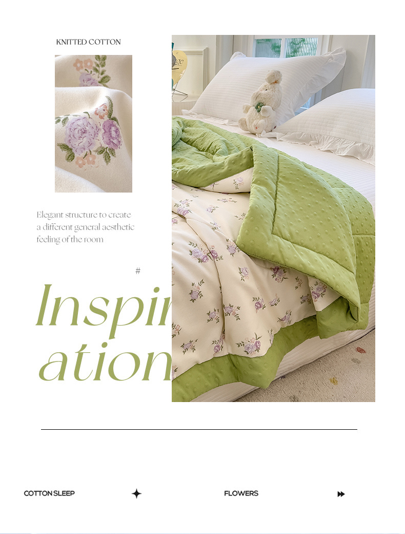 (总)斯尔顿2025新款镂空夏被四件套,初夏绿,春意,蝶恋花,荷塘月色,莫奈花园,幸运草,郁金香
