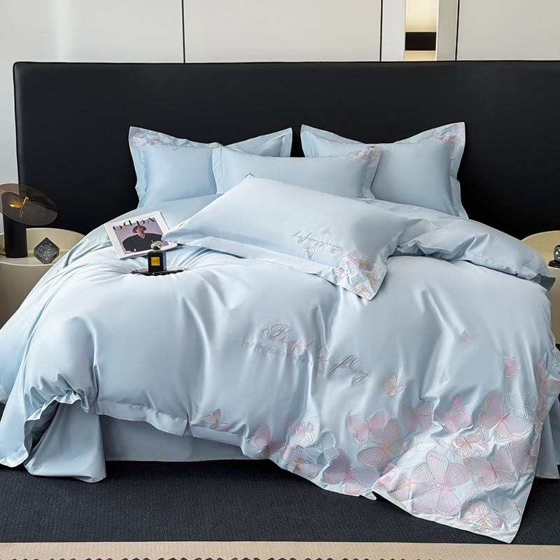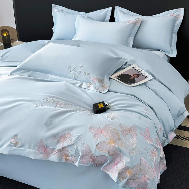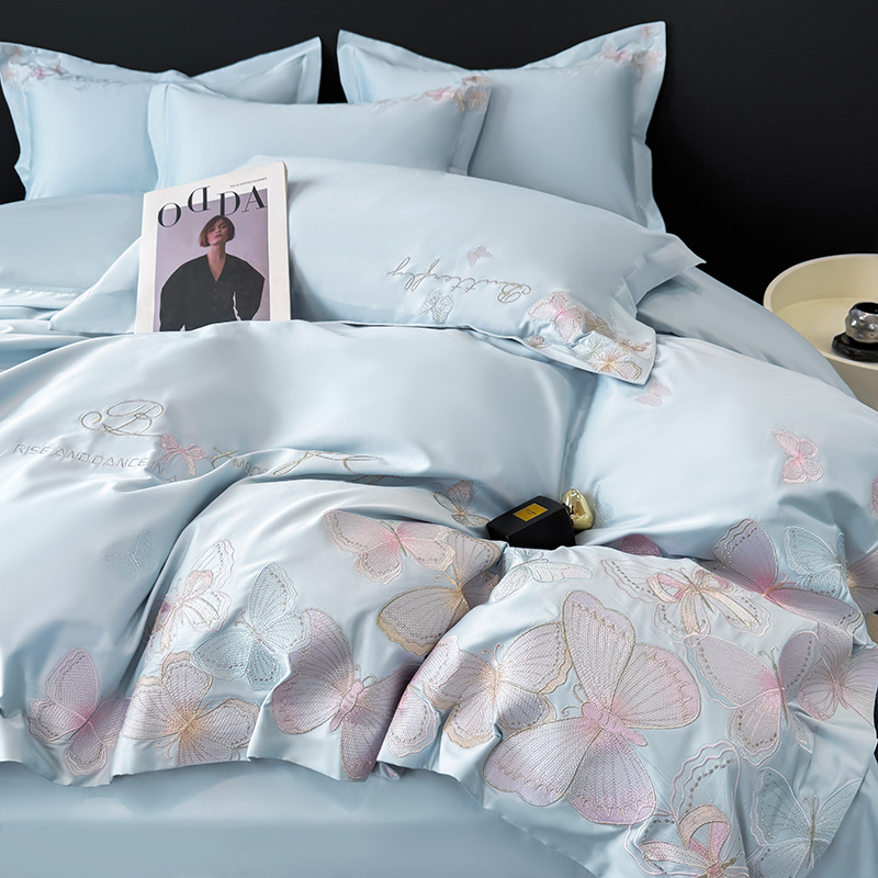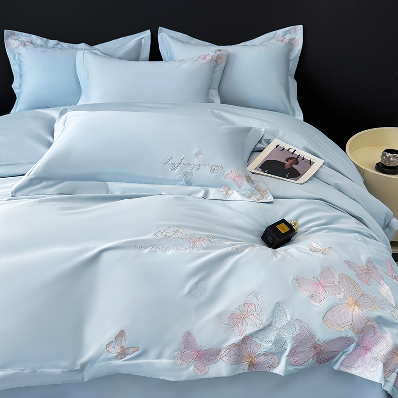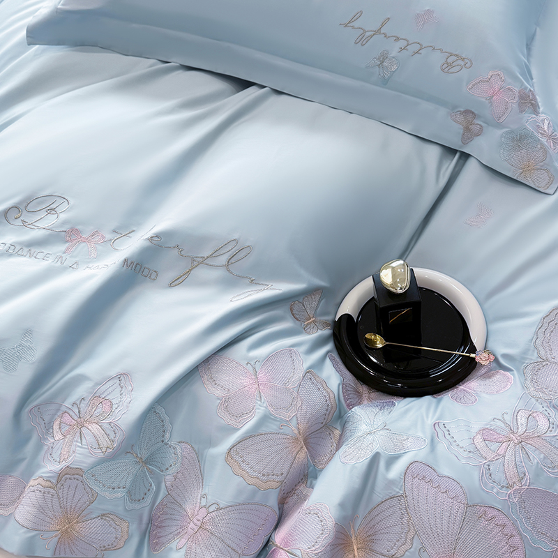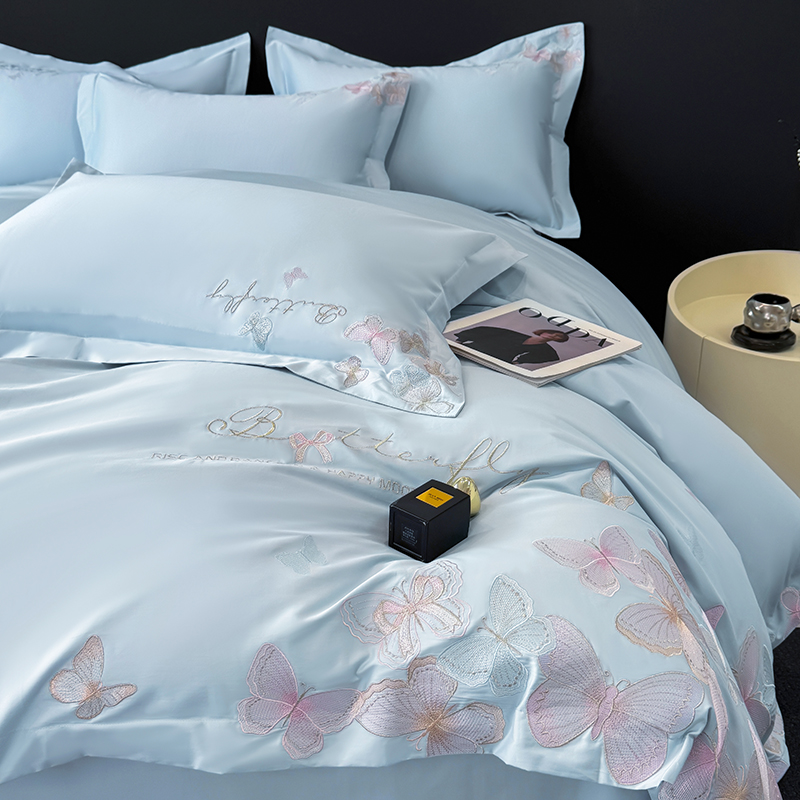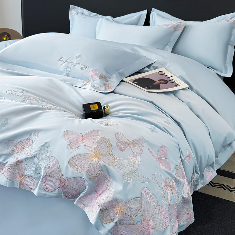 女子家纺 2026新款刺绣亲肤棉轻奢四件套 花蝶 星辰蓝