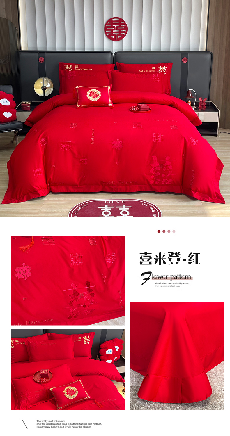 商品名称:晶缦家纺 2026新款喷气全棉13376纯棉刺绣花婚庆四件套 喜来登-金