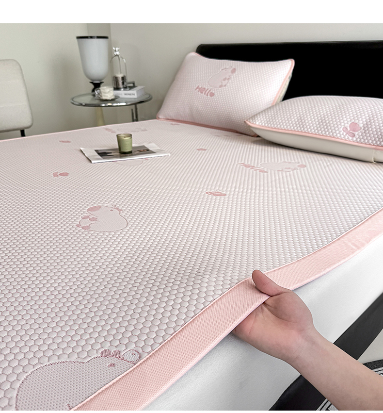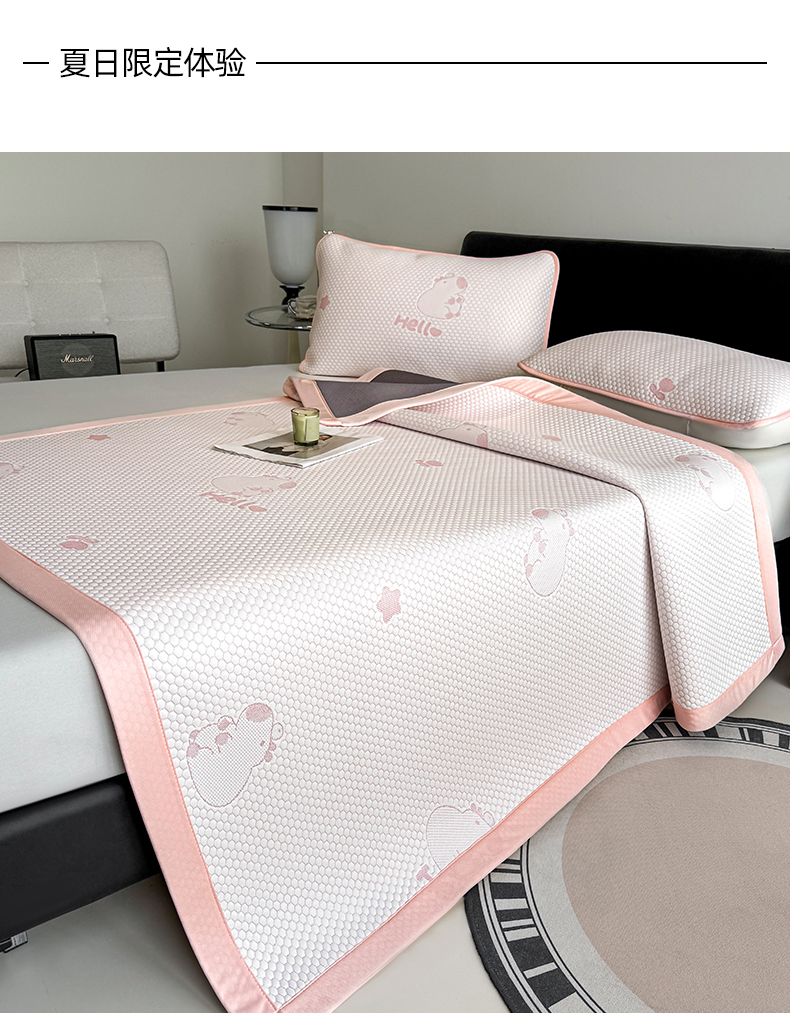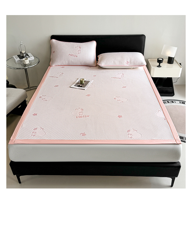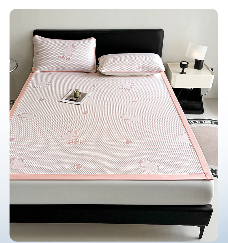 商品名称:奇丝雅 2026新款夏季A类冰豆豆凉席冰丝凉席家用冰丝席可机洗水洗单人学生宿舍上下铺寝室 卡皮巴拉-粉