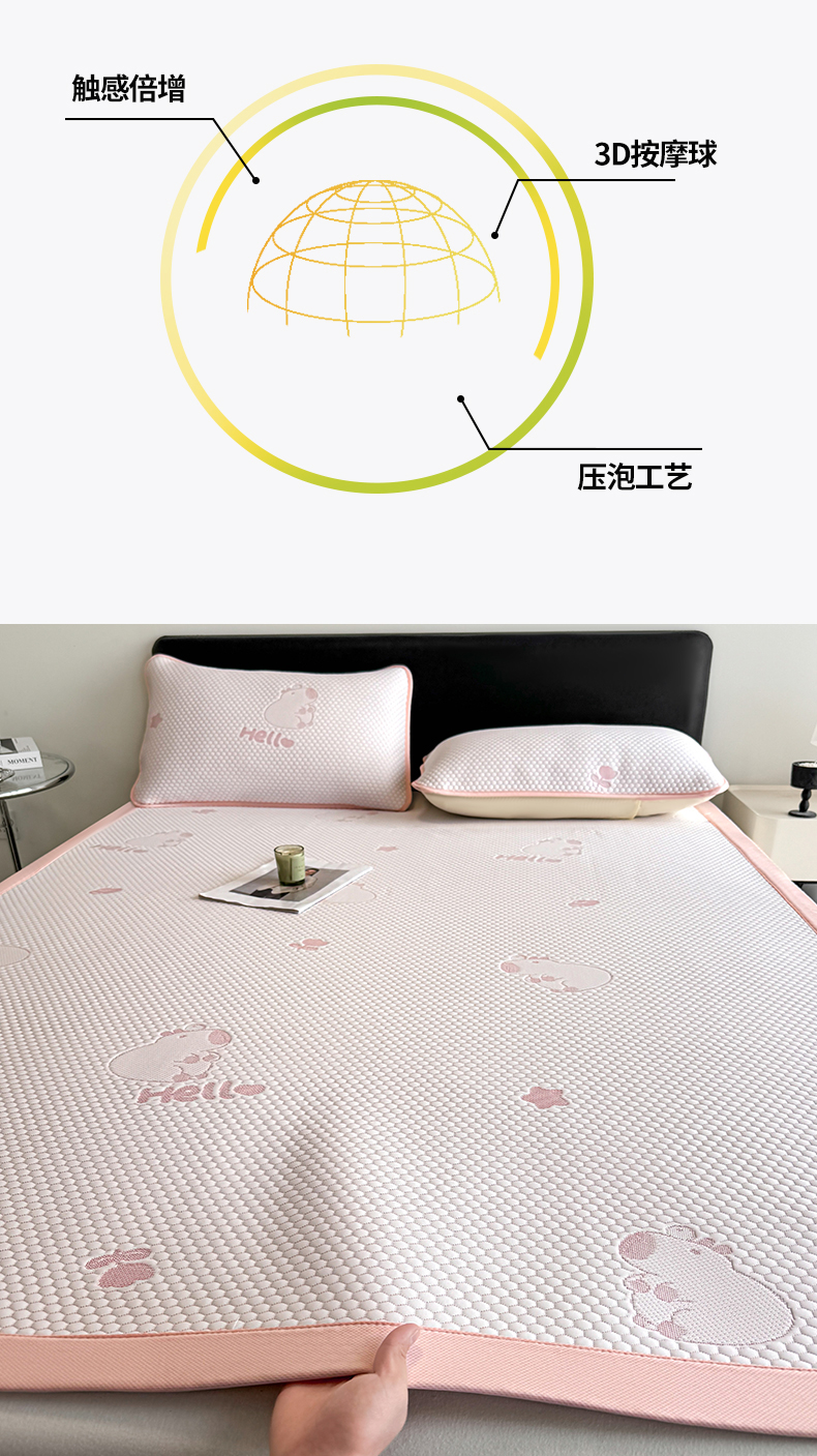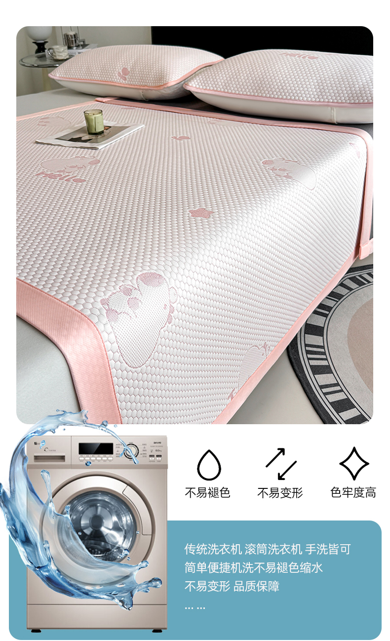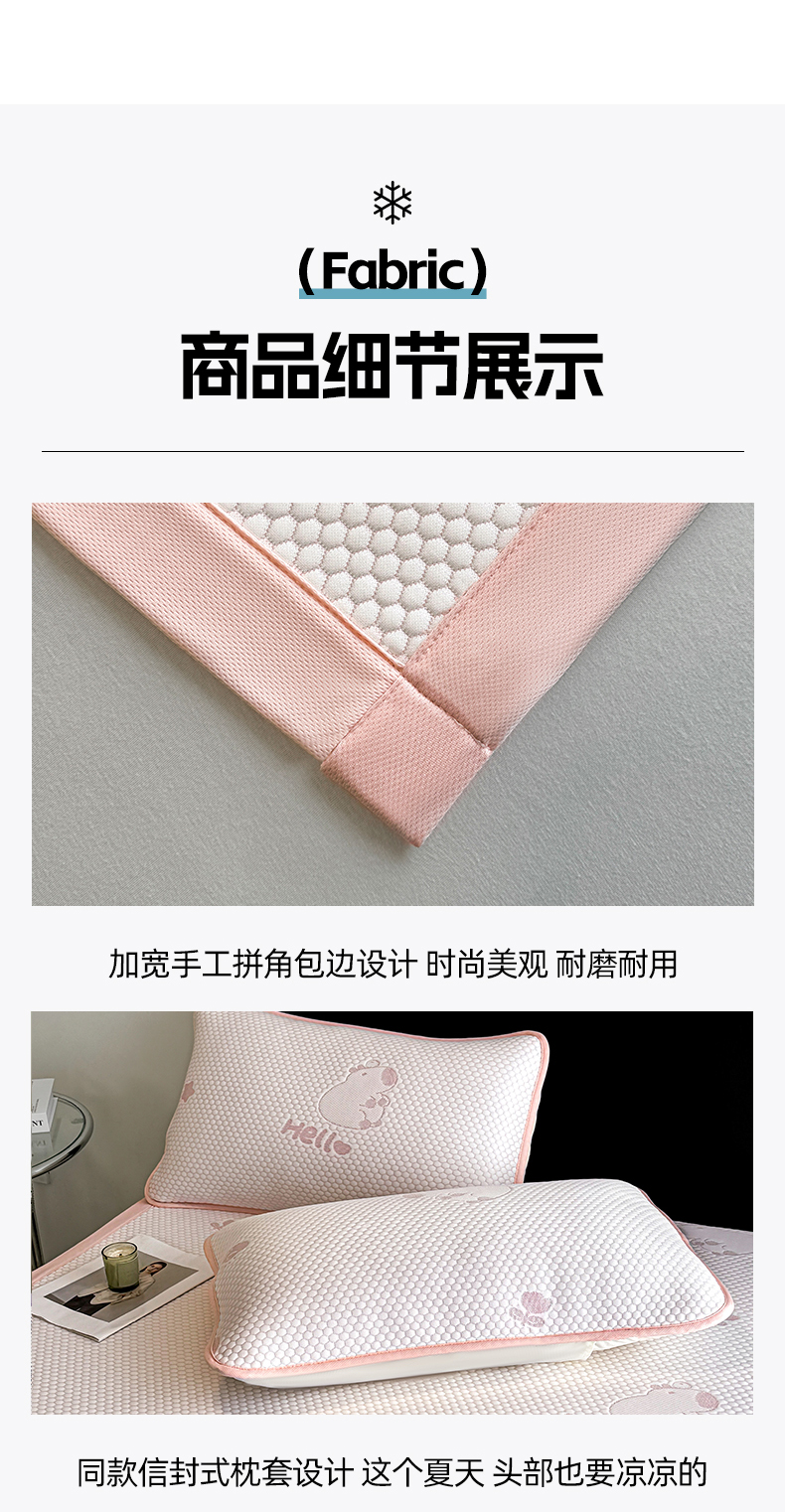 商品名称:奇丝雅 2026新款夏季A类冰豆豆凉席冰丝凉席家用冰丝席可机洗水洗单人学生宿舍上下铺寝室 卡皮巴拉-粉