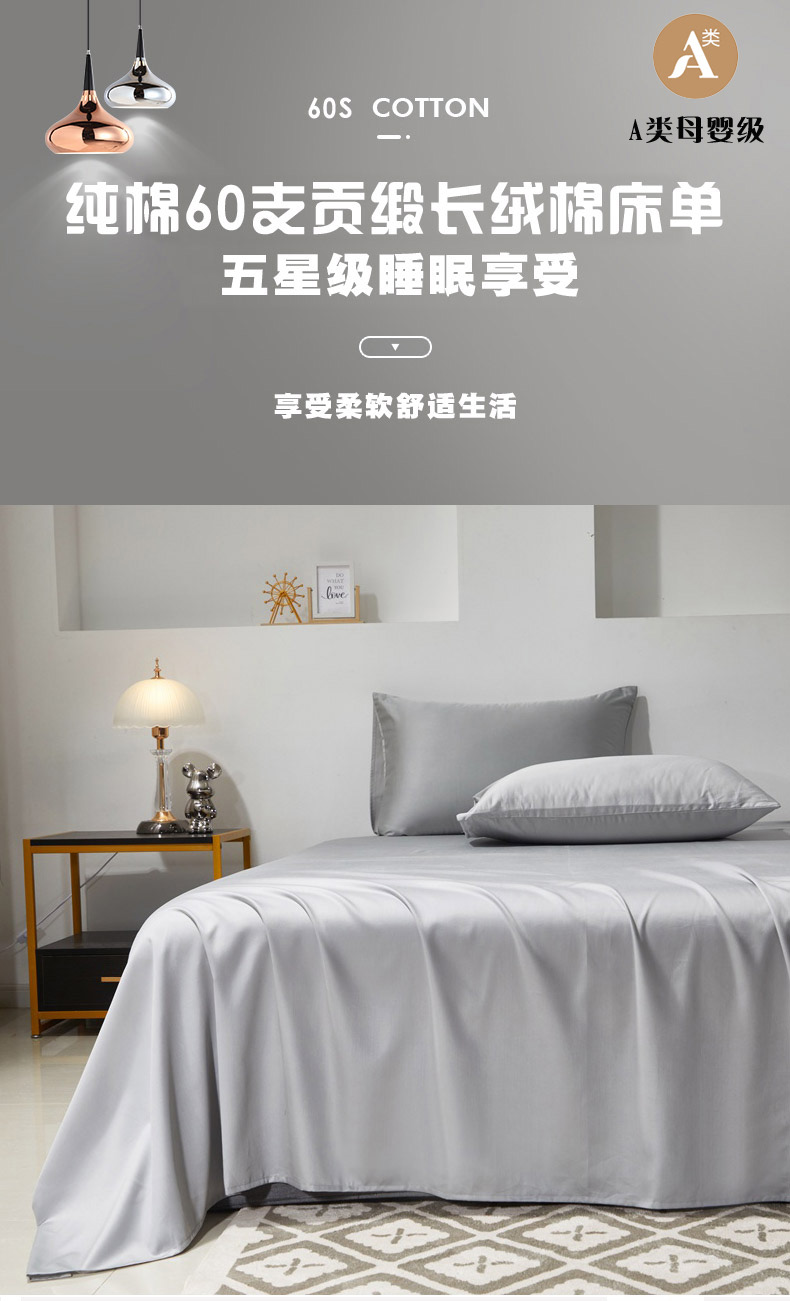 商品名称:(总)晶缦家纺 2026新款全棉A类纯棉60支贡缎长绒棉纯色单床单单品床单床单单件