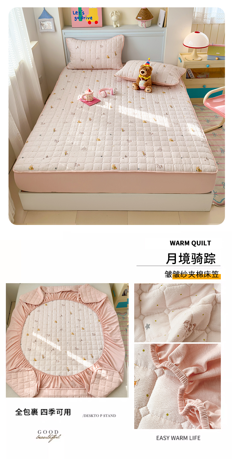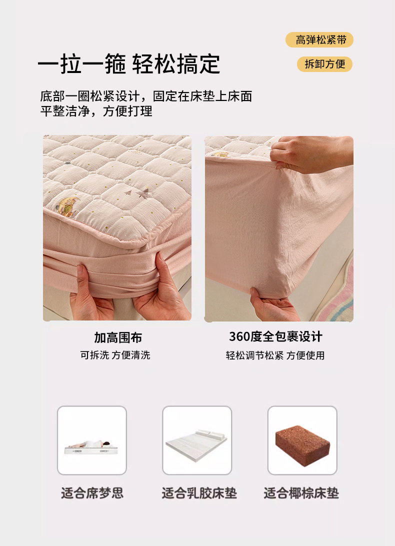 (总)丽美人家纺 2026新款双层皱皱纱大豆夹棉床笠单床笠床笠单件,JM花开漫漫,JM贝拉,JM布兰卡,JM粉格猫咪,JM格仔萌宠,JM可爱小狗,JM腊肠狗,JM乐园,JM玛丽,JM时光,JM月境骑踪,JM紫雾叶兔