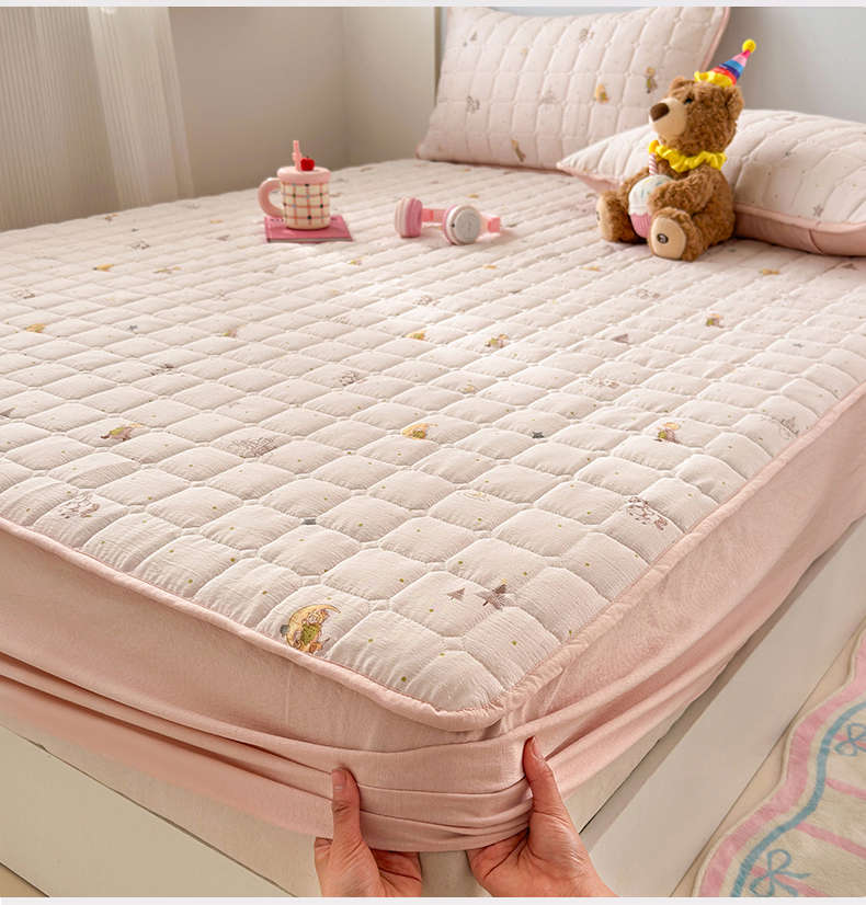 • 91家纺网 家纺一手货源 找家纺 (总)丽美人家纺 2026新款双层皱皱纱大豆夹棉床笠单床笠床笠单件,JM花开漫漫,JM贝拉,JM布兰卡,JM粉格猫咪,JM格仔萌宠,JM可爱小狗,JM腊肠狗,JM乐园,JM玛丽,JM时光,JM月境骑踪,JM紫雾叶兔