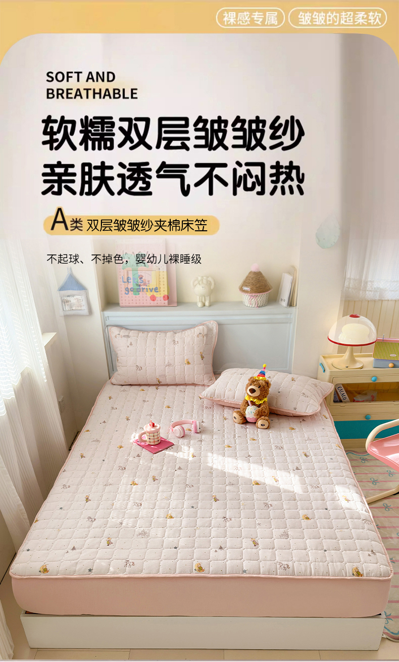 丽美人家纺 2026新款双层皱皱纱大豆夹棉床笠单床笠床笠单件 JM月境骑踪