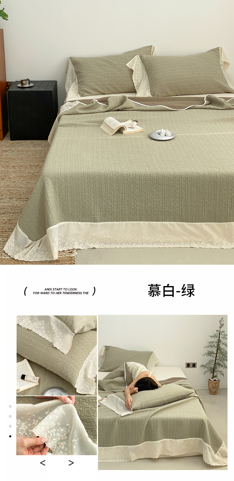 商品名称:麻依 2026新款全棉纯棉纱布床盖三件套四季款 组合图仅供展示-不可下单