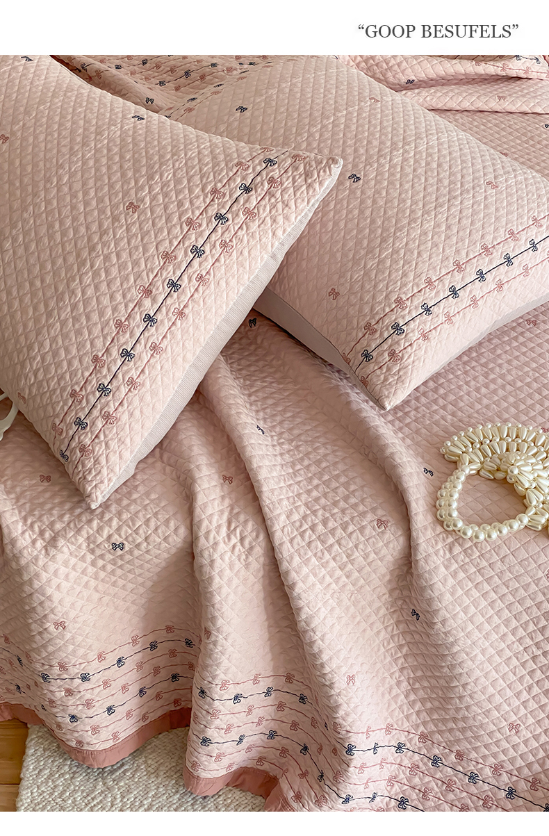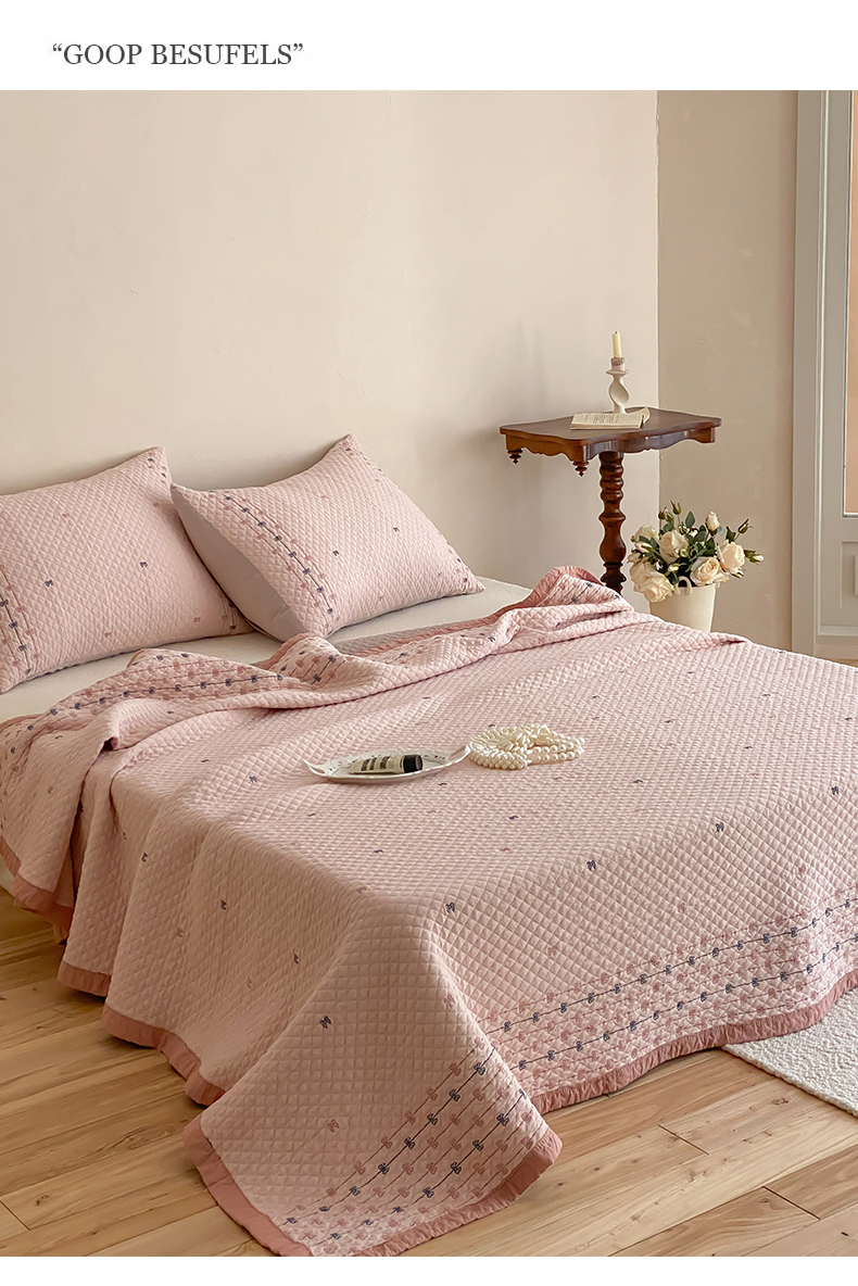 商品名称:麻依 2026新款韩国重工全棉纱布床盖床盖三件套 烟雨-粉