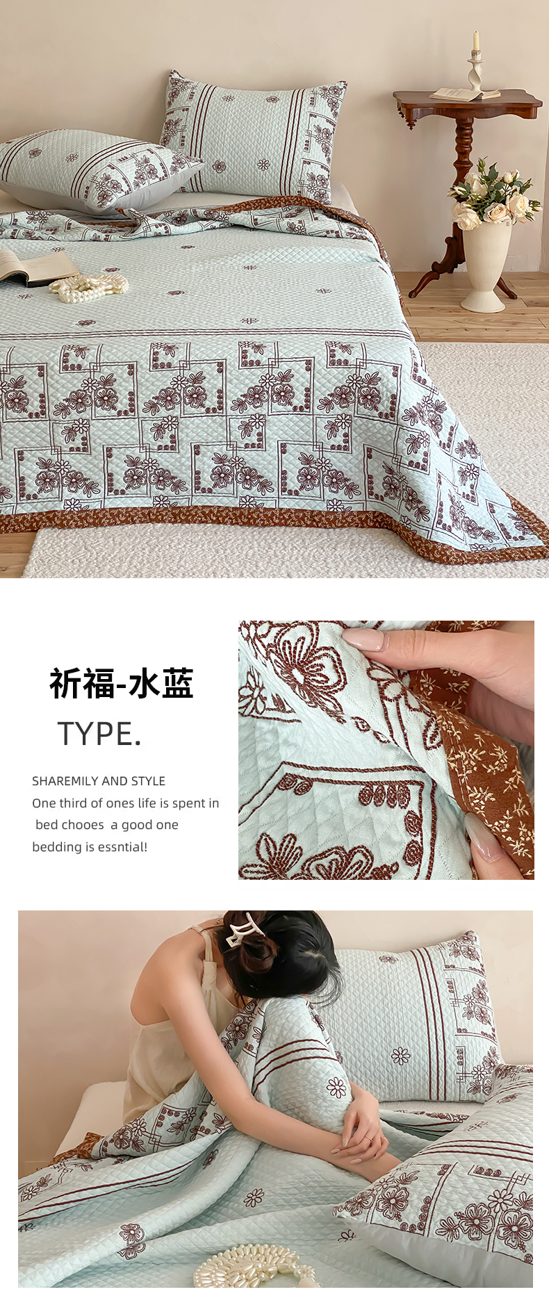 (总)麻依 2026新款全棉纯棉纱布床盖三件套四季款,半纱-粉,半纱-蓝,半纱-驼,慕白-绿,慕白-粉,慕白-驼,组合图仅供展示-不可下单