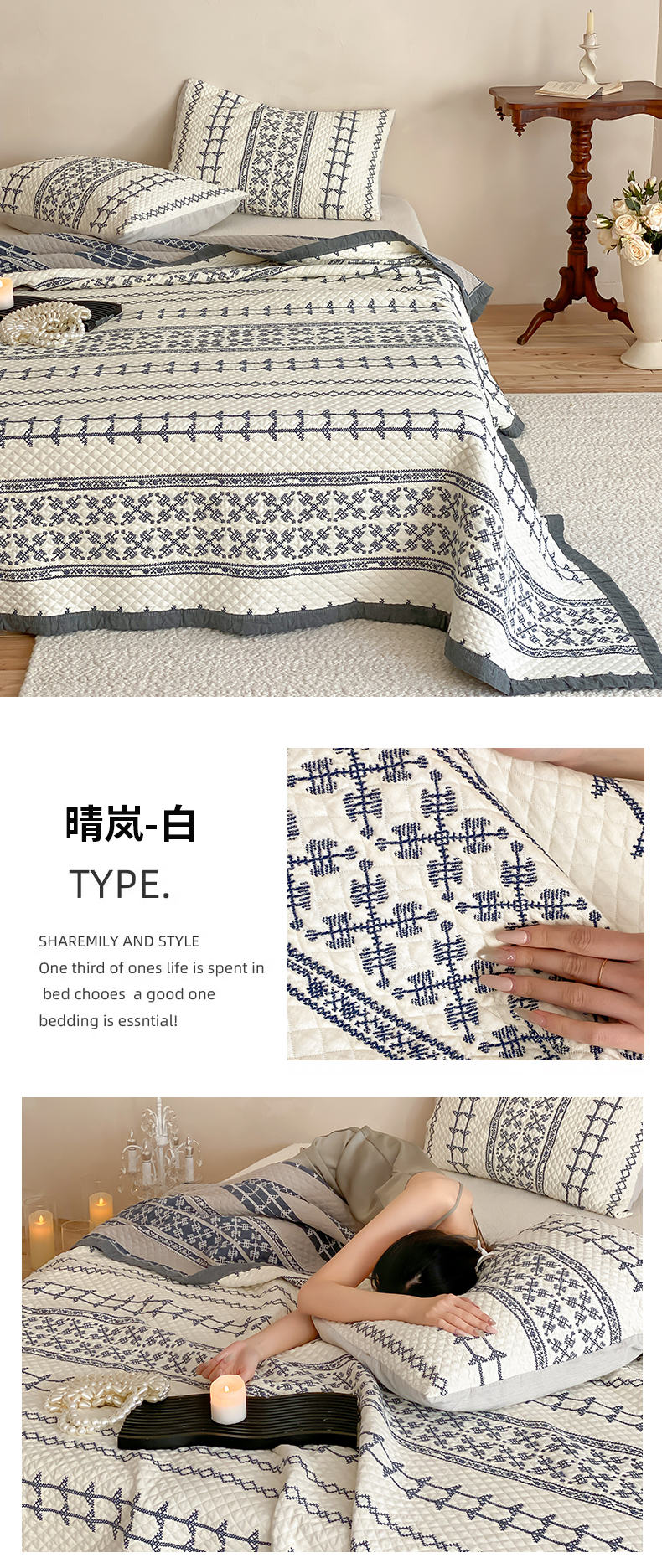 (总)麻依 2026新款韩国重工全棉纱布床盖床盖三件套,楼兰-粉,楼兰-米白,洛格羽,祈福-米白,祈福-水蓝,晴岚-灰咖,晴岚-米白,三叶草,小花排排,烟雨-粉,烟雨-灰咖,韵语-驼,组合图仅供展示-不可下单