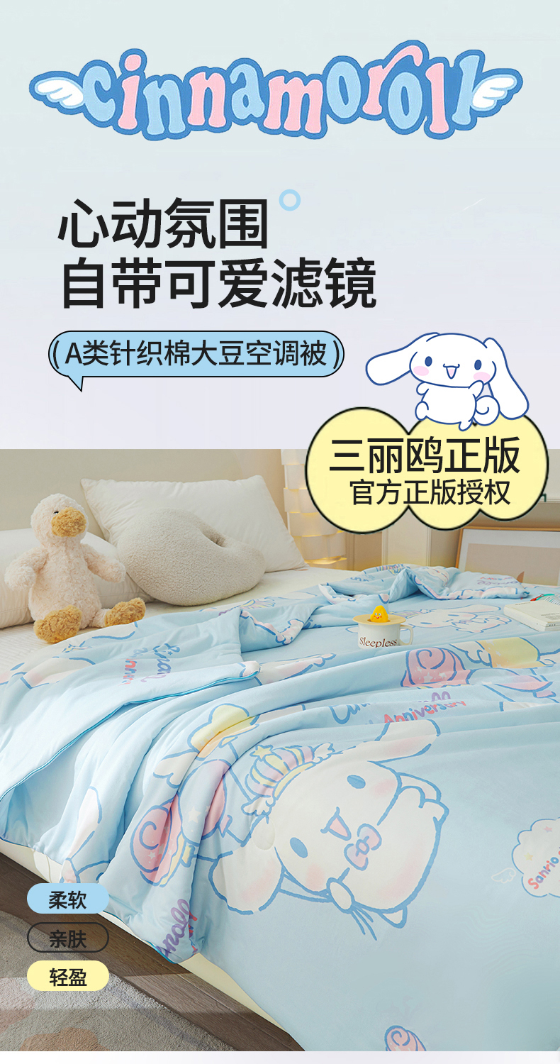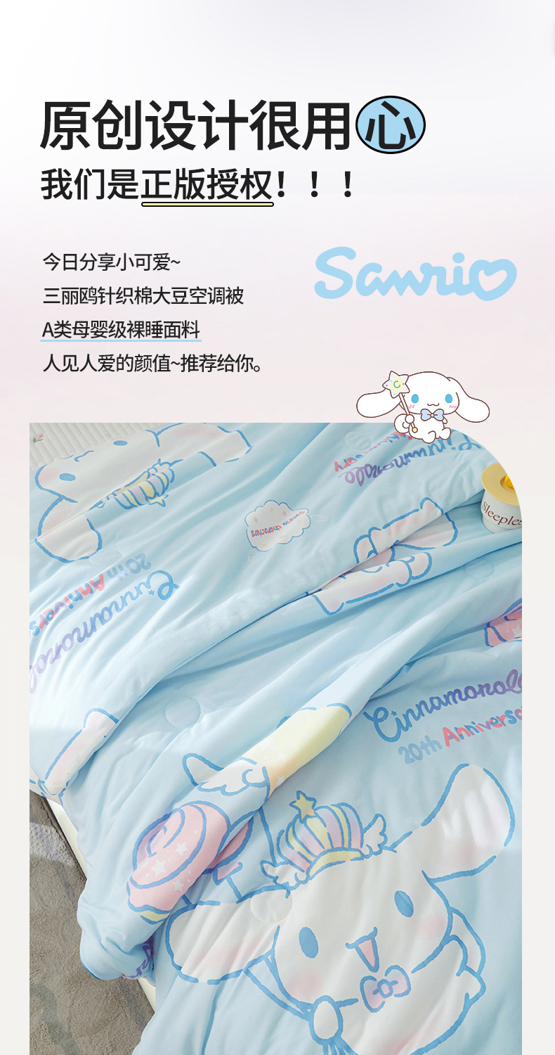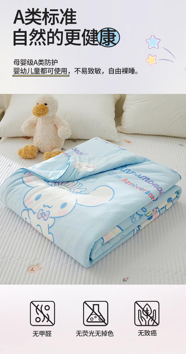 商品名称:优雅星家纺 2026新款A类针织棉三丽鸥正版夏被儿童卡通牛奶丝凉感夏凉被 玉桂狗-天蓝