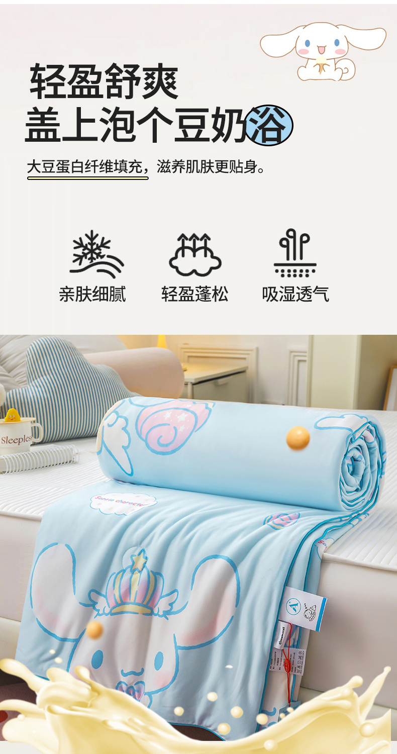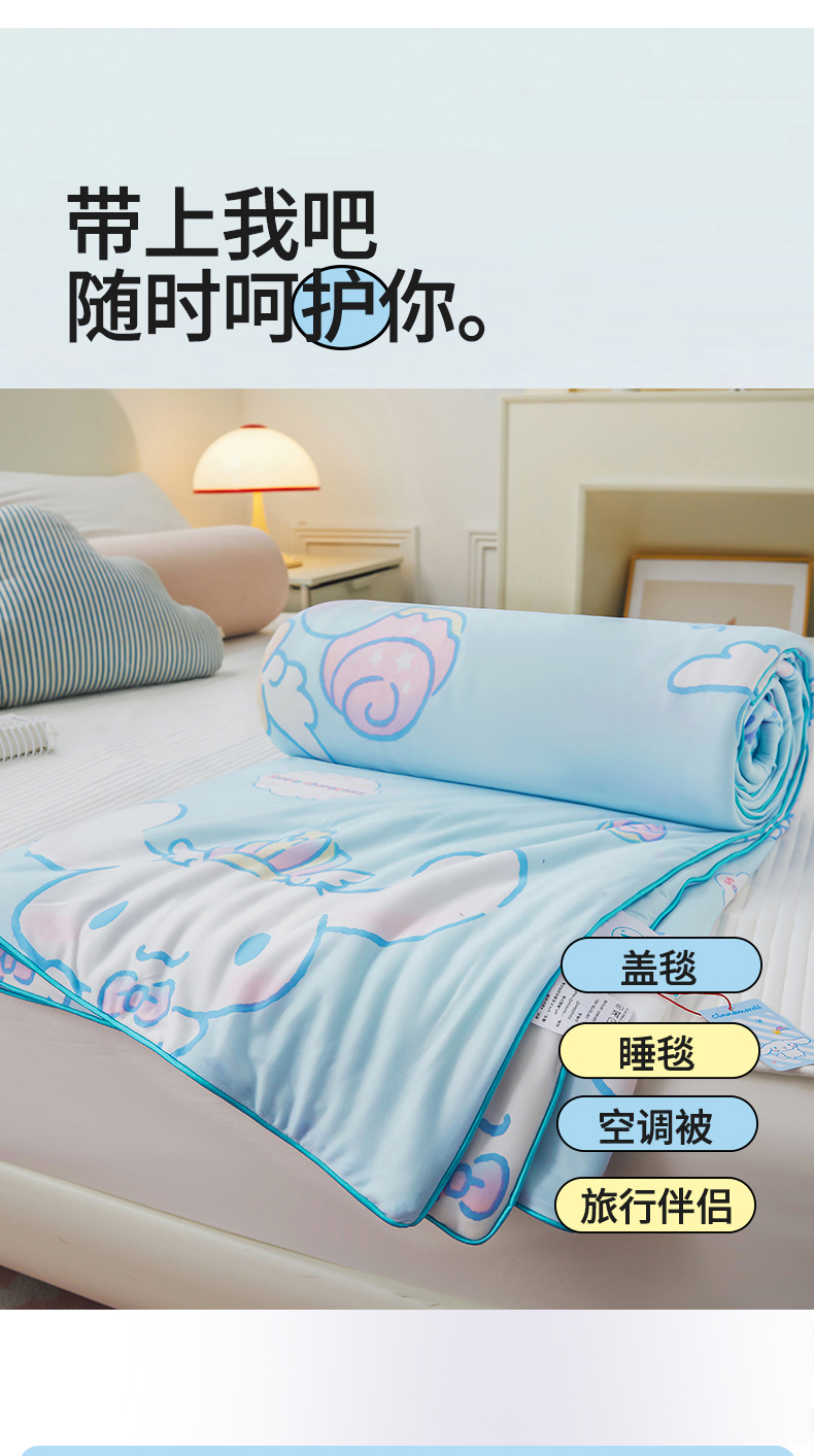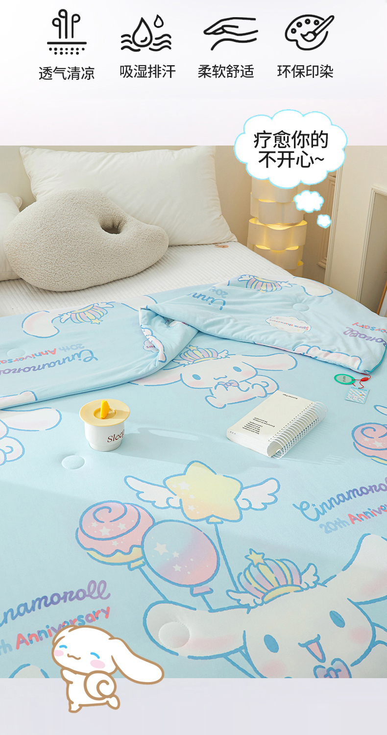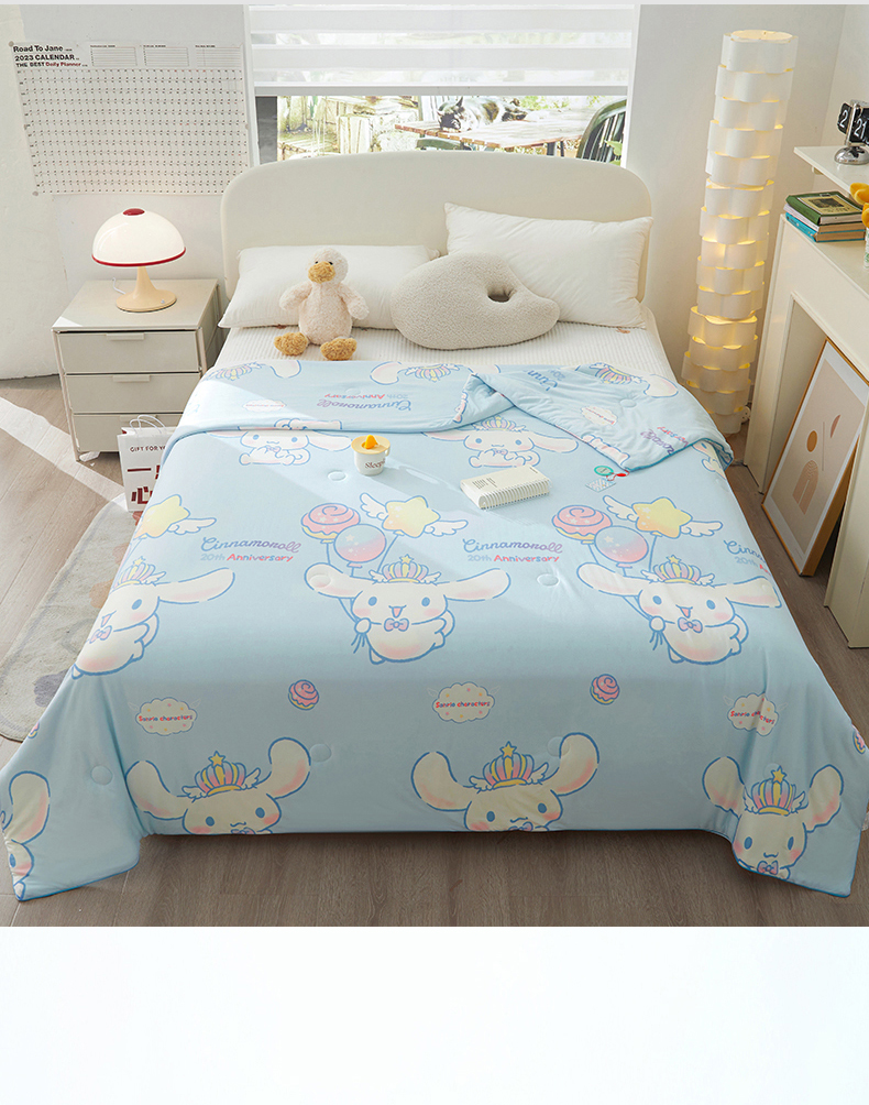 商品名称:优雅星家纺 2026新款A类针织棉三丽鸥正版夏被儿童卡通牛奶丝凉感夏凉被 玉桂狗-天蓝