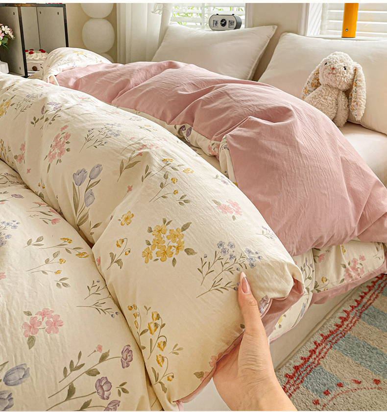 商品名称:纽缦家纺 2026新款A类105g仿棉四件套古法水洗棉单被套 铃兰-兰