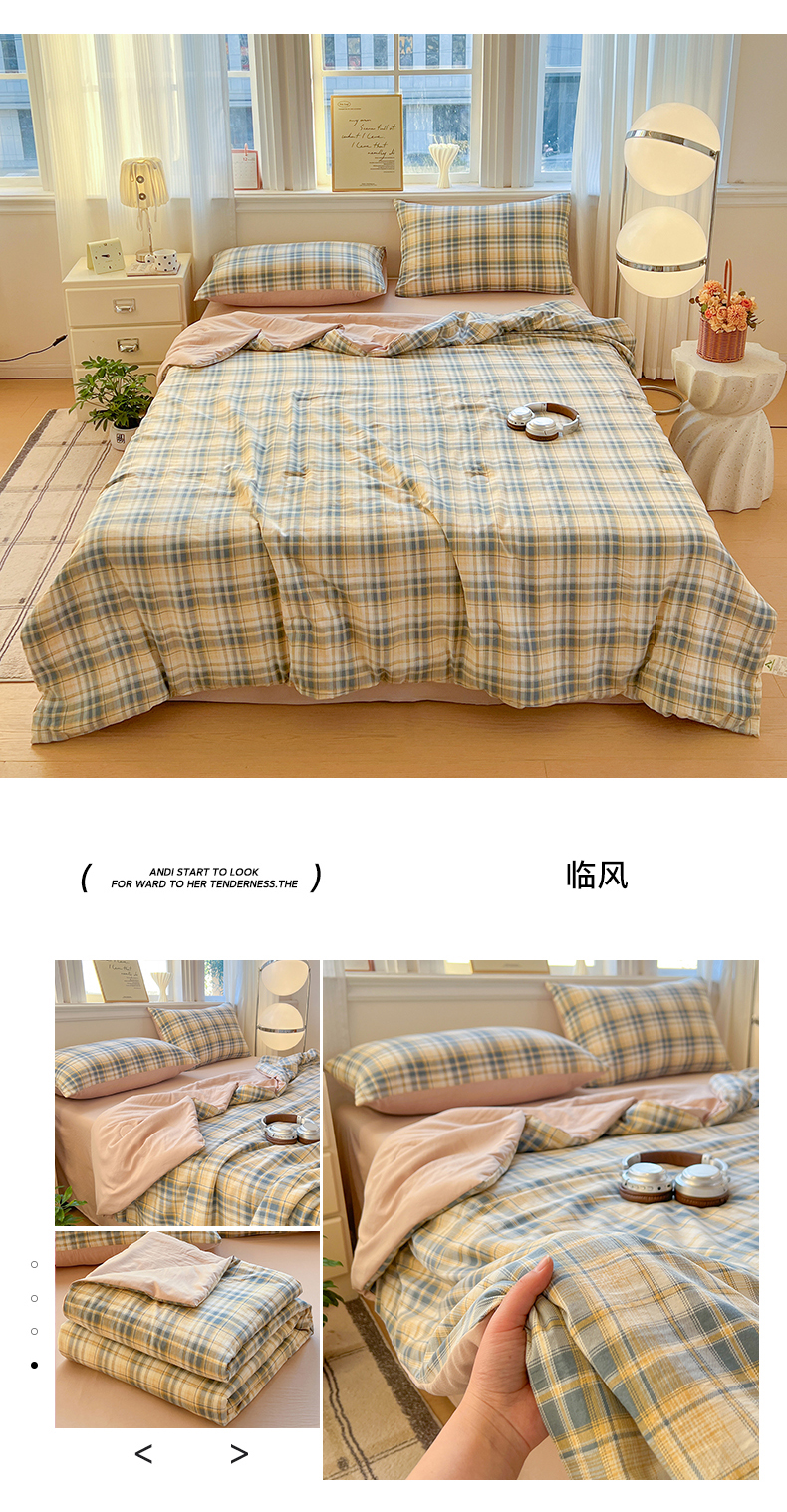 商品名称:纽缦家纺 2026新款水洗棉简约格子风夏被 暮春