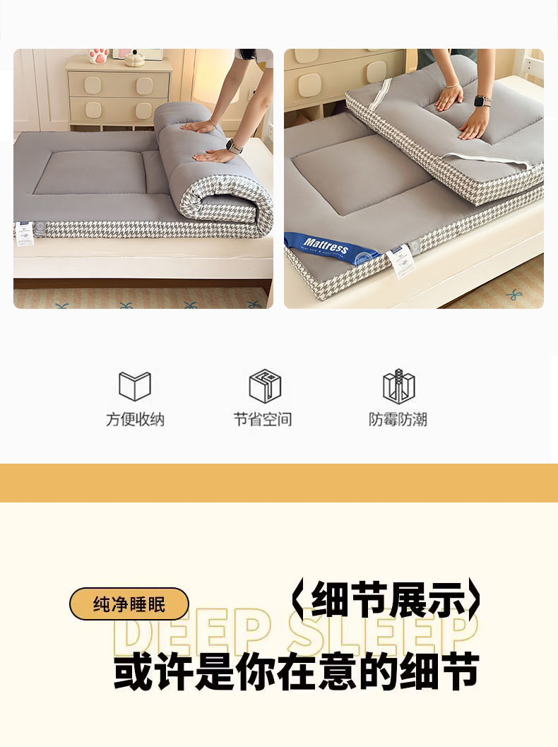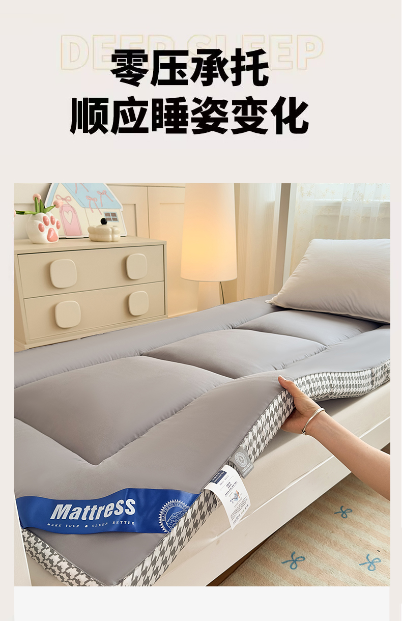 当前位置: 91家纺网 > 商品网购 > 床垫/床褥 > 普通床垫 > 优雅星家纺 2026新款A类水洗棉抗菌大豆床垫千鸟格系列 灰色