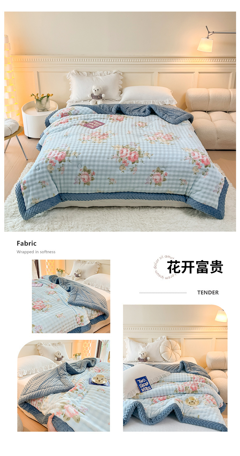 • 91家纺网 家纺一手货源 找家纺 (总)优雅星家纺 2026新款A类小清新四季可用学生宿舍床单  单件夹棉炕盖床盖炕毯三件套(长期有货),格调,花海,花韵,蓝格樱桃,萌宠乐园,觅香,汐春之语,幸运乐园,紫韵花开