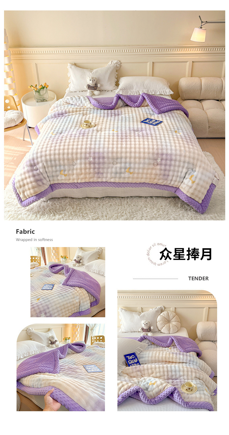 • 91家纺网 家纺一手货源 找家纺 优雅星家纺 2026新款亲肤舒适兔毛绒豆豆绒冬被 众星捧月舞(老花型)