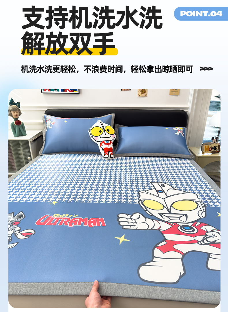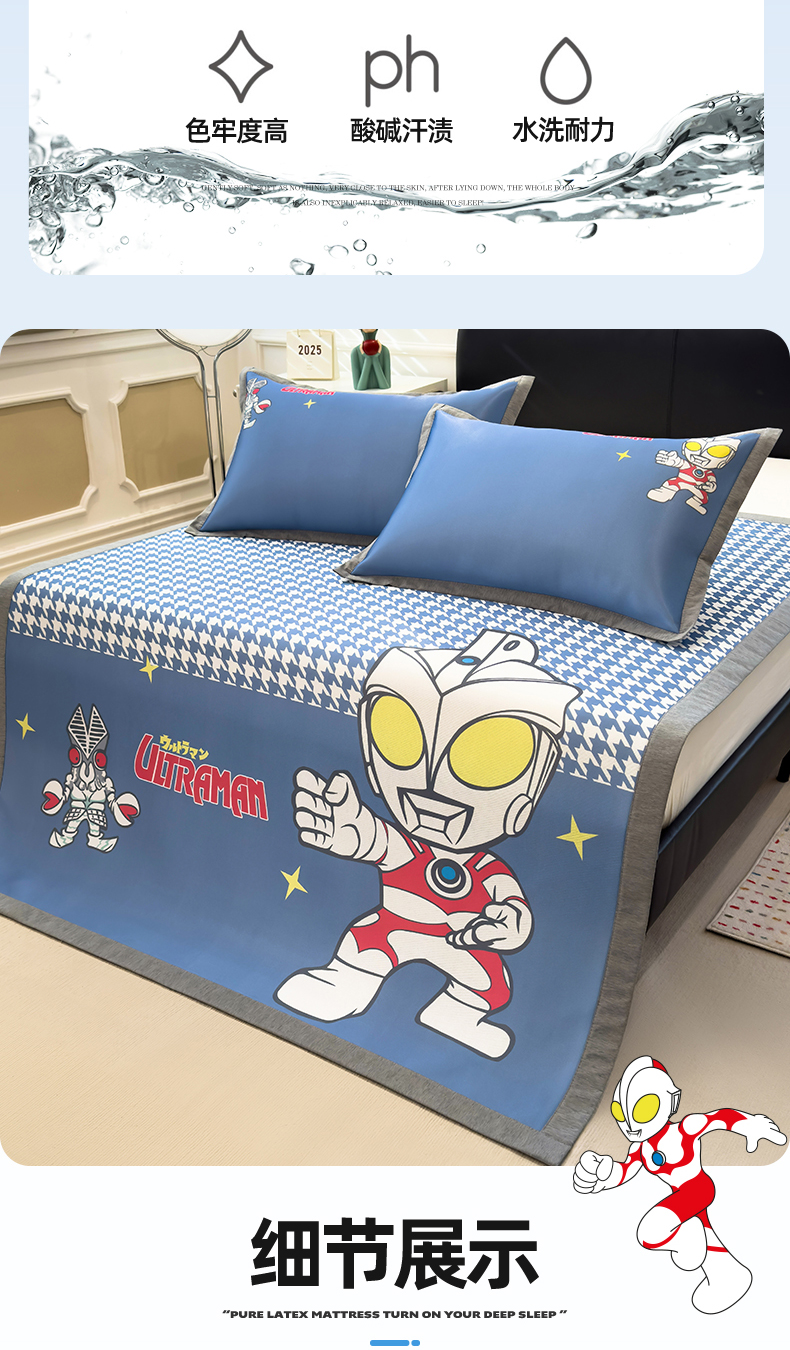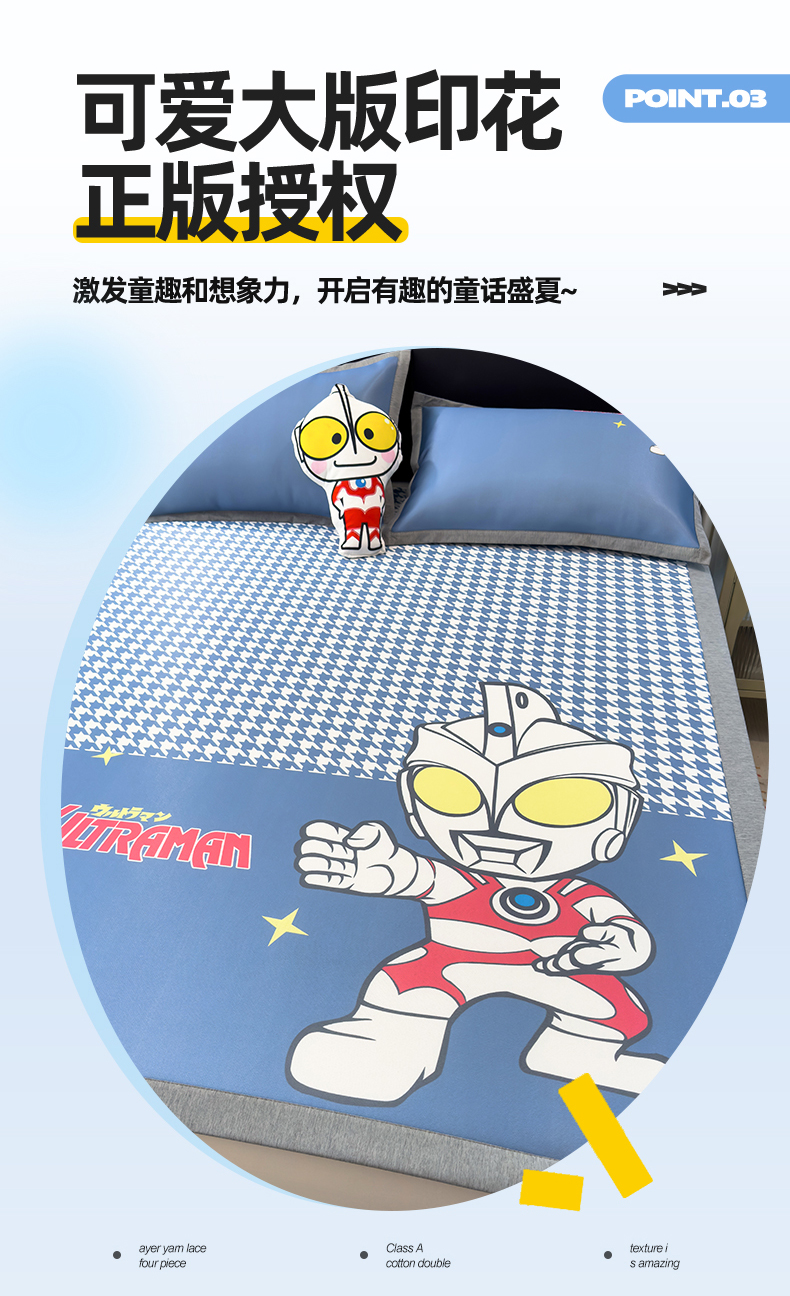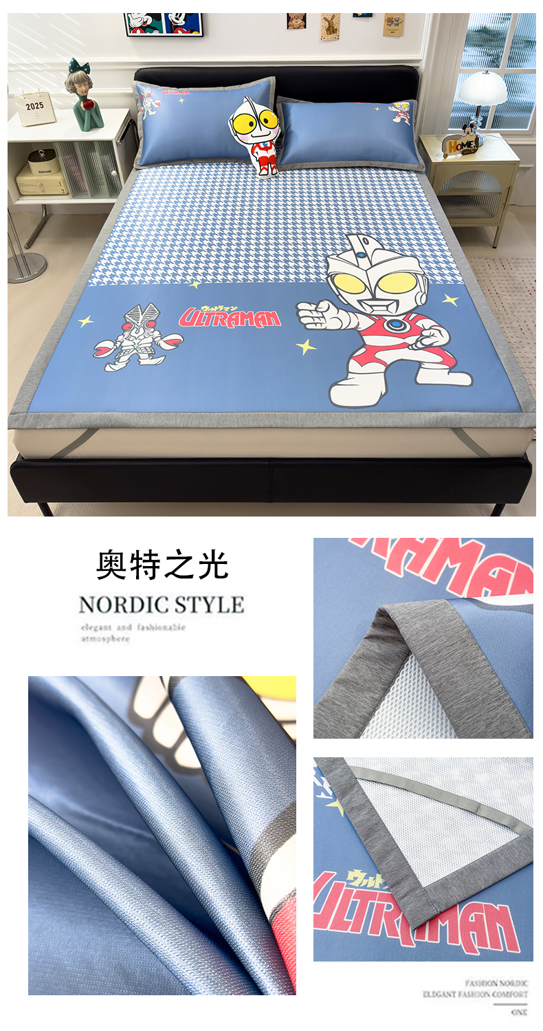 商品名称:兄弟坊 2026新款正版授权A类大版卡通烫光冰丝凉席冰丝席 奥特之光
