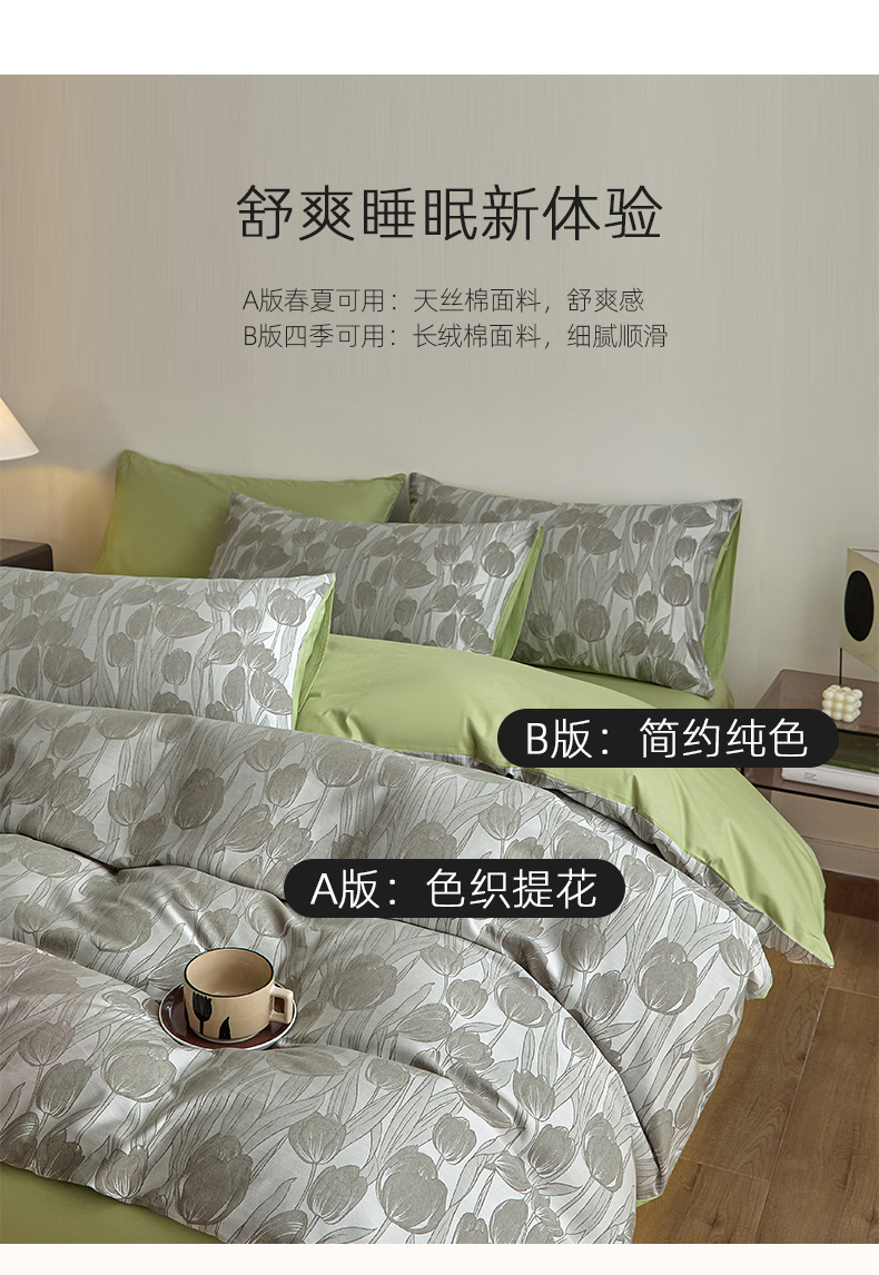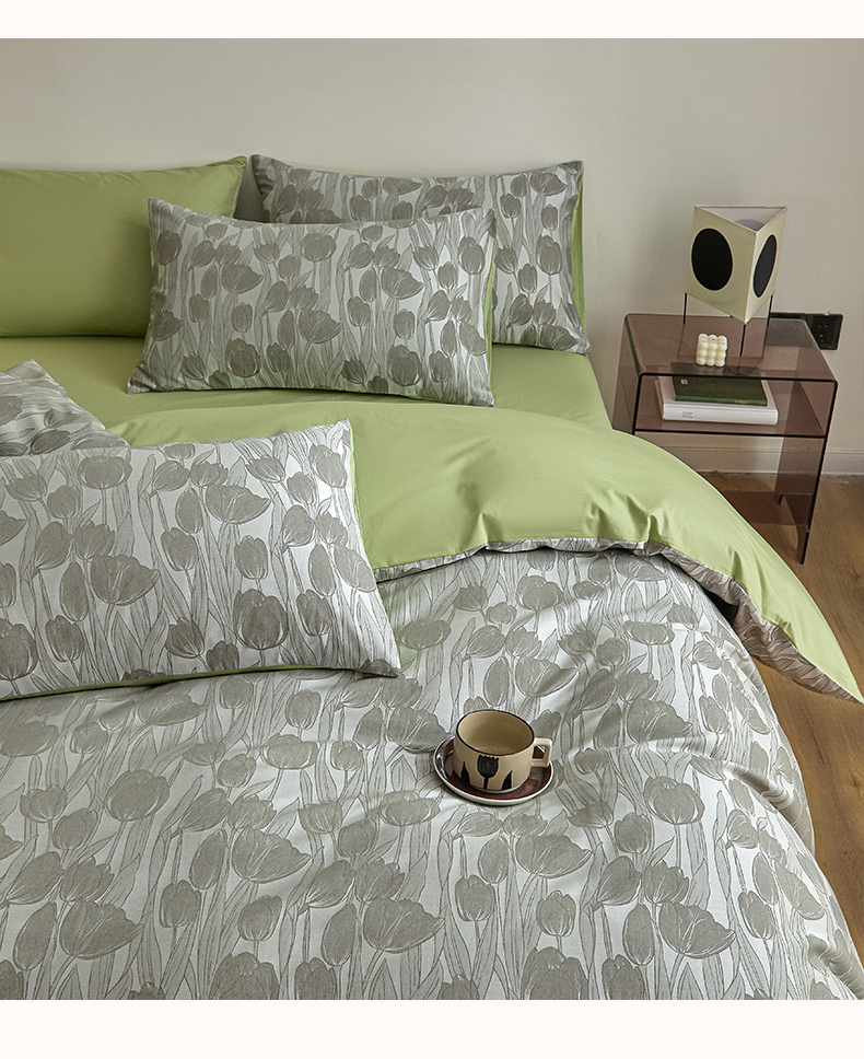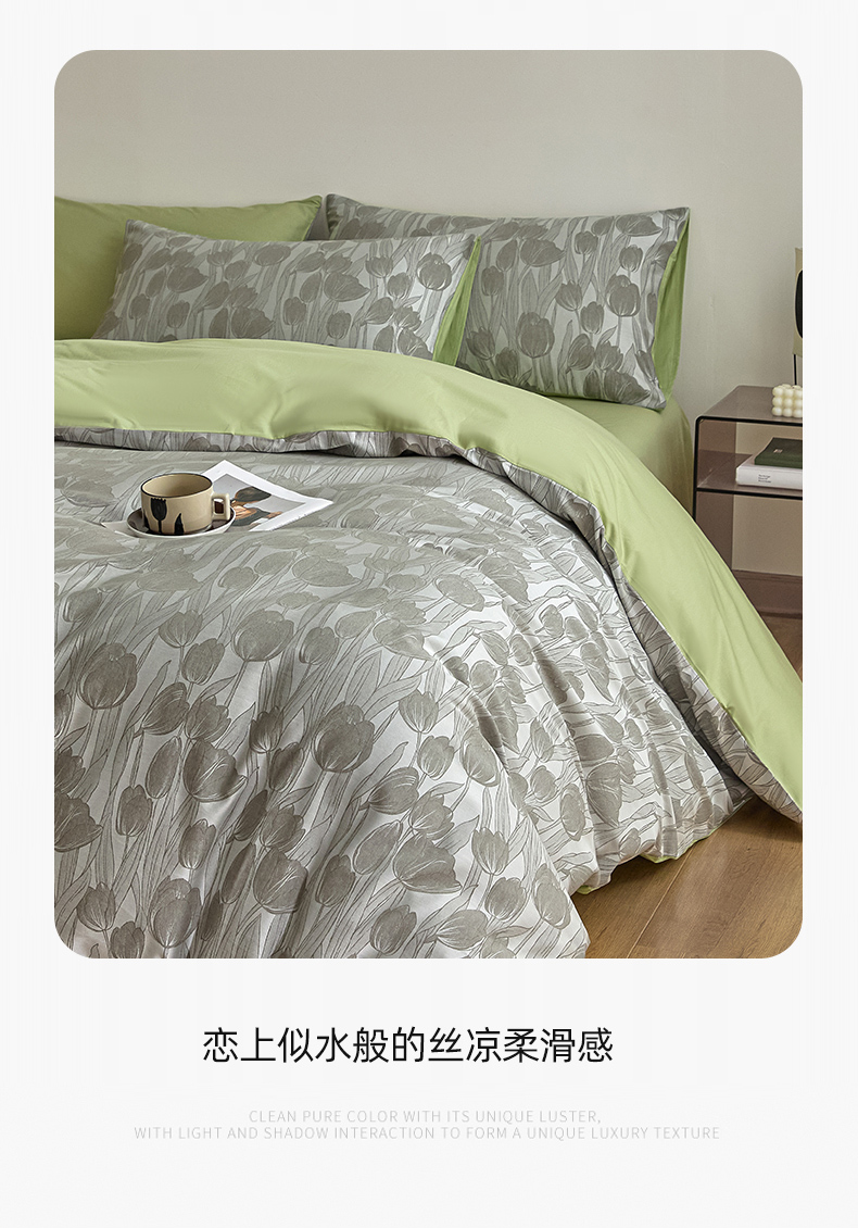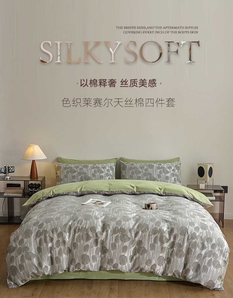 当前位置: 91家纺网 > 商品网购 > 床品套件 > 四件套 > 色织四件套 > 琪格格纺织 2026新款色织天丝棉提花四件套 风之语-绿