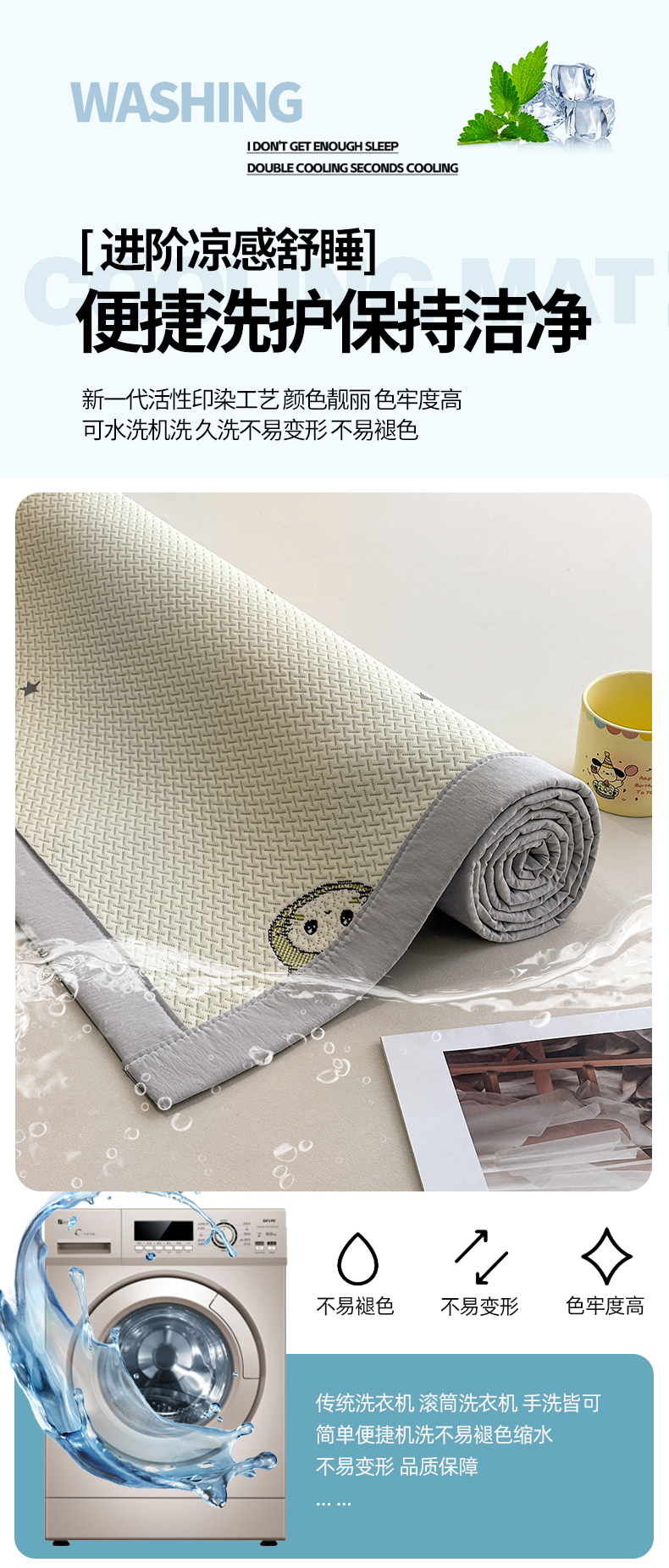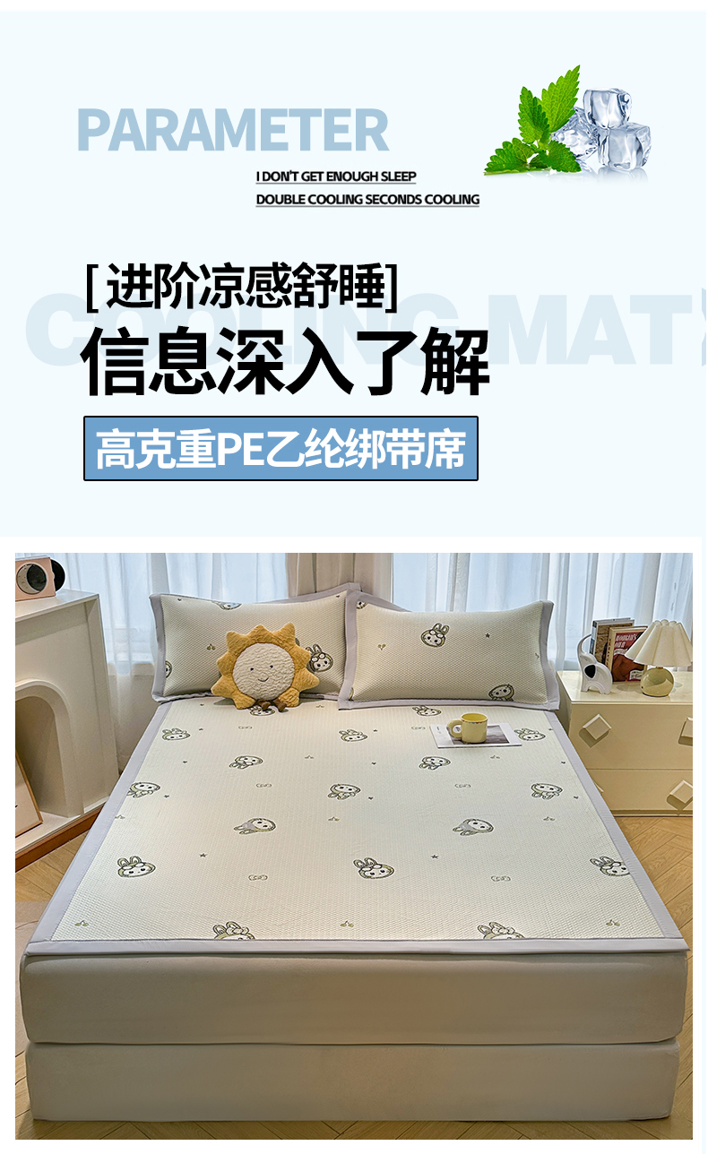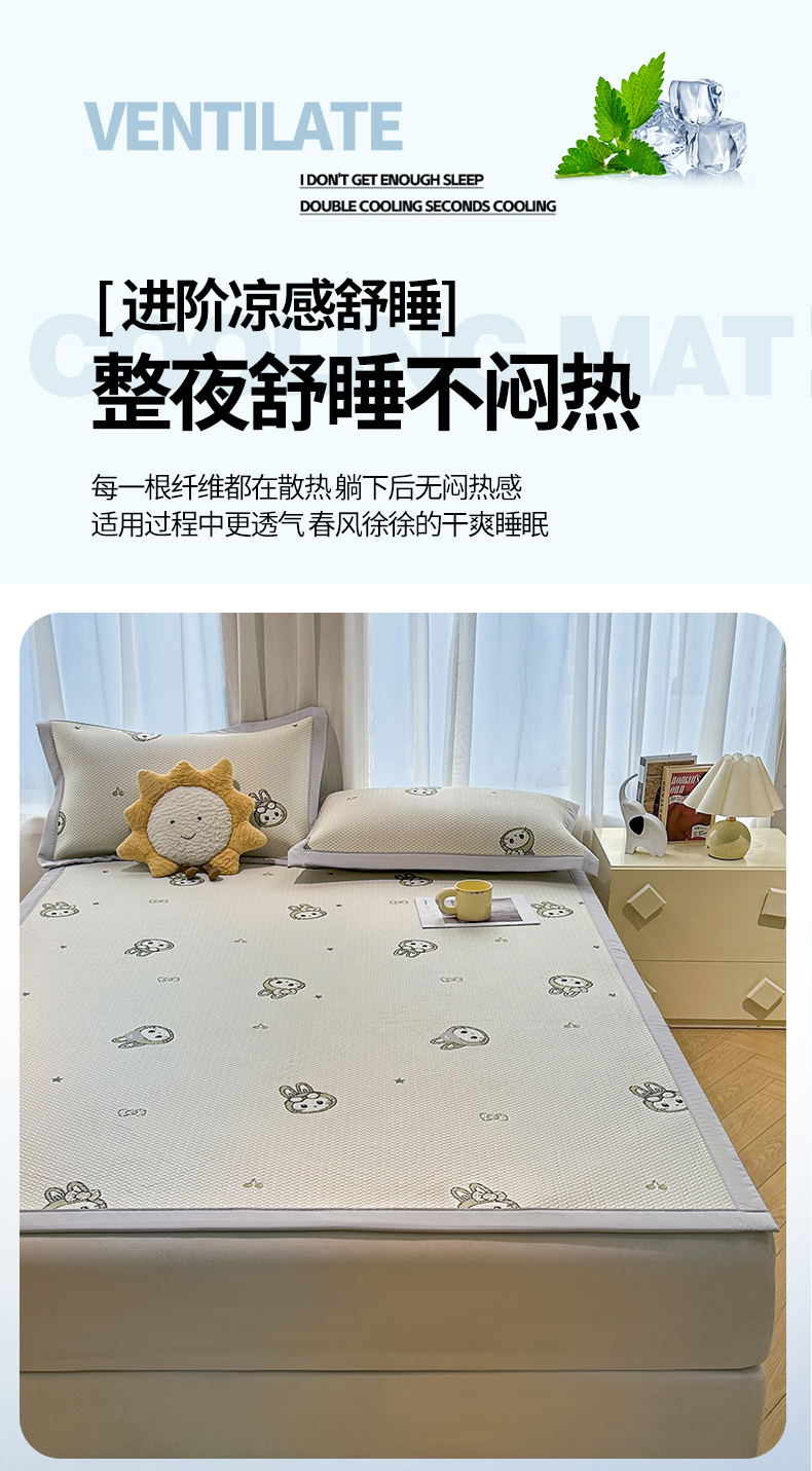 商品名称:居易简 2026新款卡通实拍小红书爆款凉豆豆凉席100%PE 乙纶凉感可水洗床席席子-床席款 可爱布布