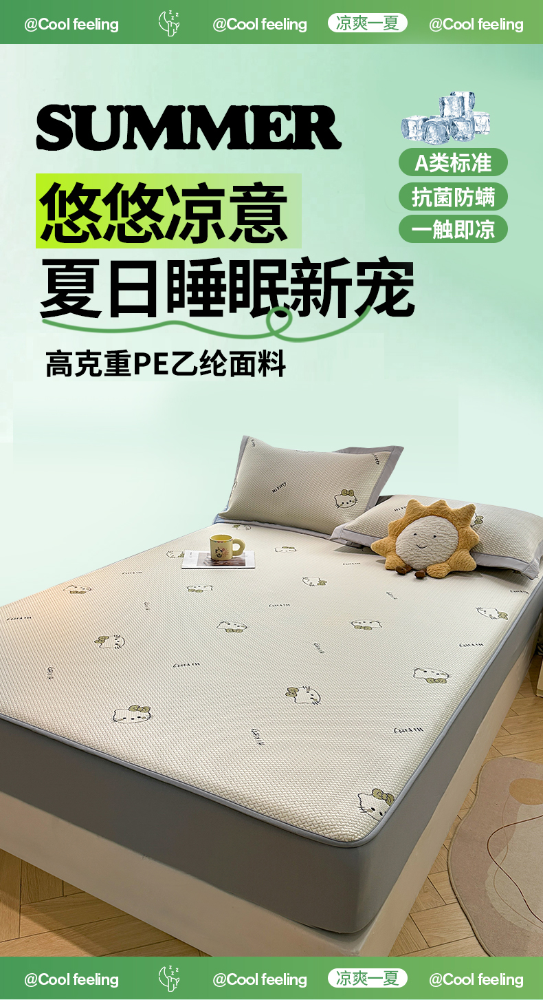 商品名称:居易简 2026新款卡通实拍小红书爆款凉豆豆凉席100%PE 乙纶凉感可水洗床席席子-床笠款 梦境KT