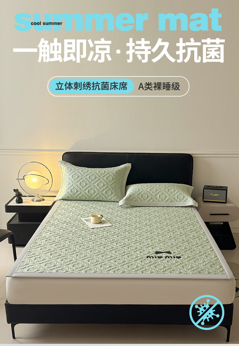 (总)居易简 2026新款刺绣实拍爆款凉豆豆凉席100%PE乙伦绣花可水洗床席席子-床笠款,蝶韵 冰浅灰-床笠款,蝶韵 冰清绿-床笠款,蝶韵 冰雾蓝-床笠款,蝶韵 冰雾紫-床笠款,蝶韵 冰云粉-床笠款,菱格 冰浅灰-床笠款,菱格 冰清绿-床笠款