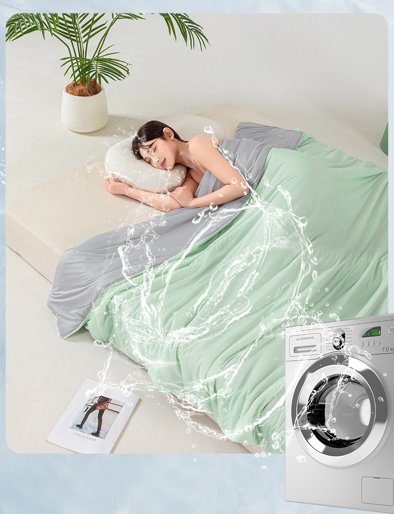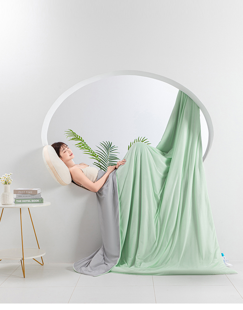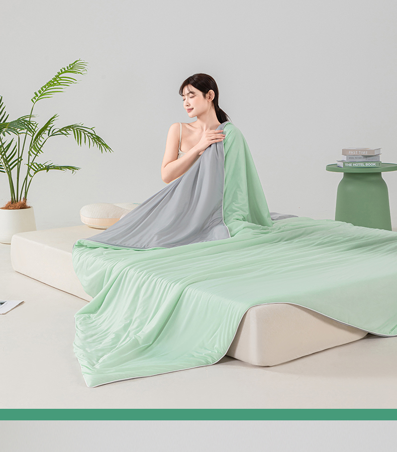 名兮家居 2026春夏纯色双拼A类凉感丝夏凉被 薄荷绿-浅灰