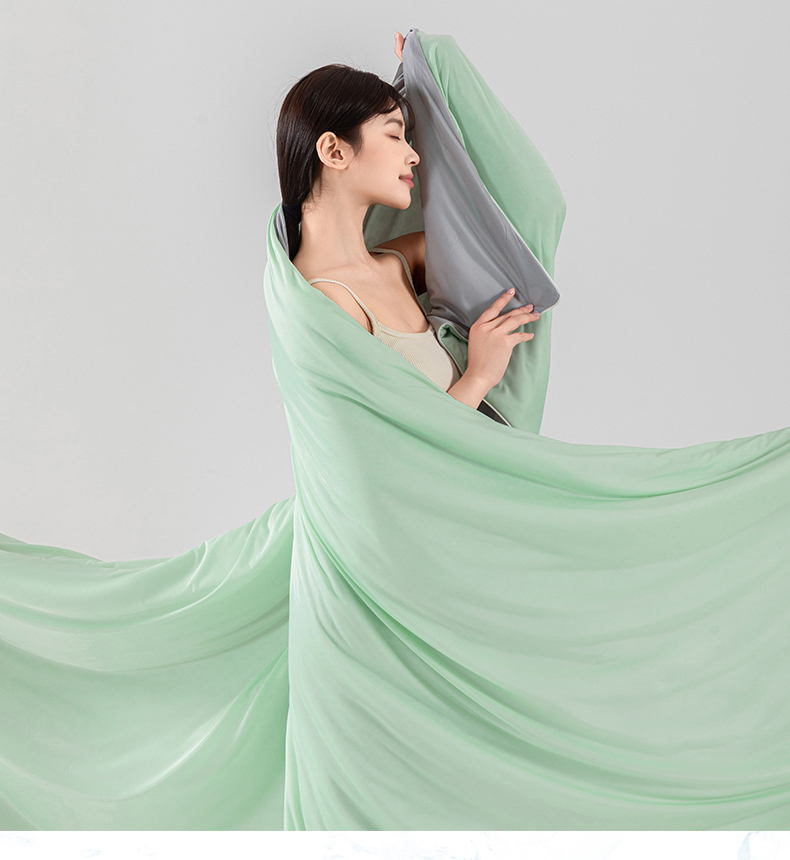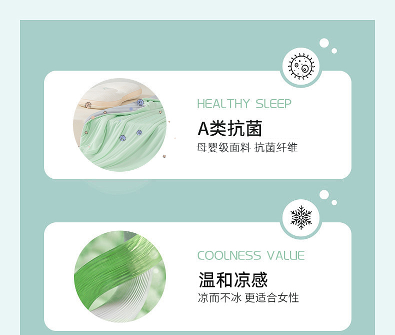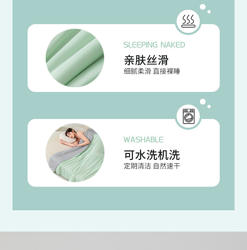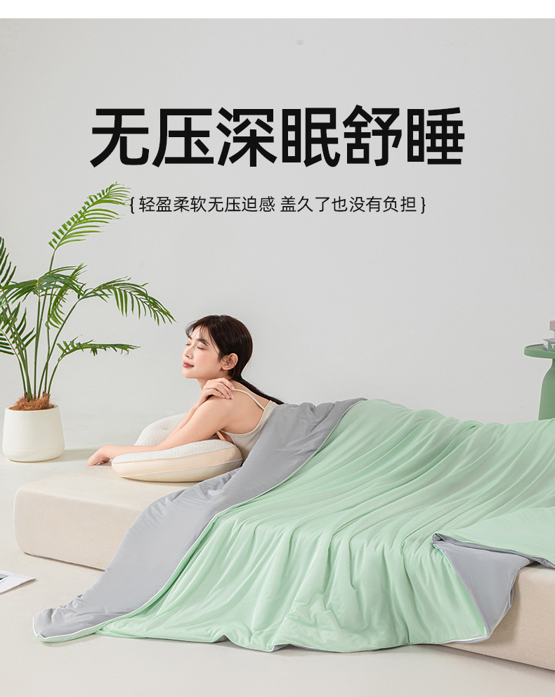 商品名称:名兮家居 2026春夏纯色双拼A类凉感丝夏凉被 薄荷绿-浅灰