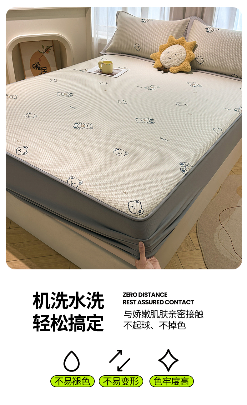 商品名称:玉相逢 2026新款卡通实拍小红书爆款凉豆豆凉席100%PE 乙纶凉感可水洗床席席子-床笠款 蓝蓝小熊