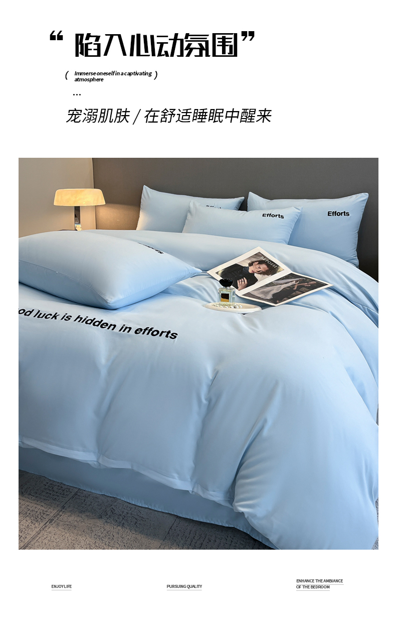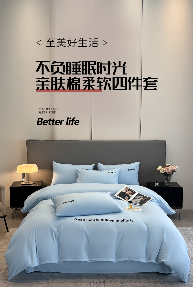 经年 2026春夏新款亲肤棉加厚磨毛刺绣四件套-励志 励志-蓝