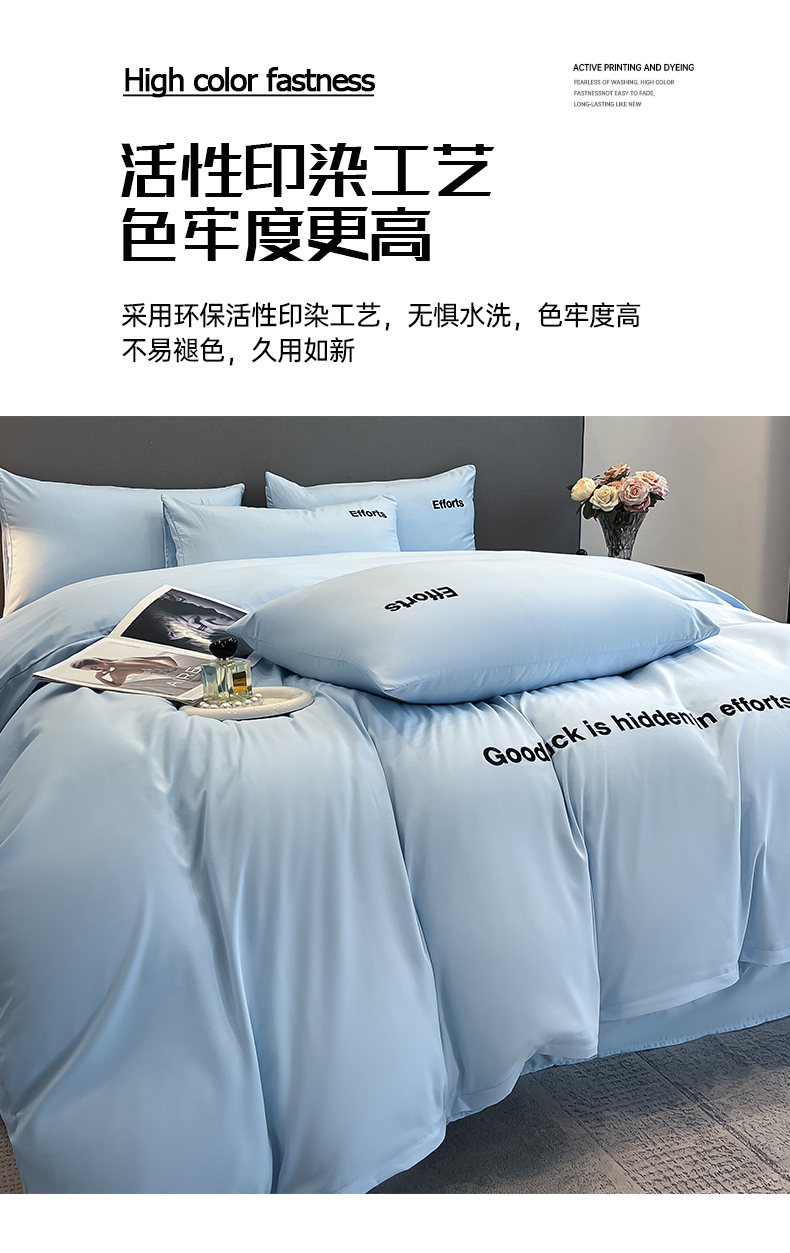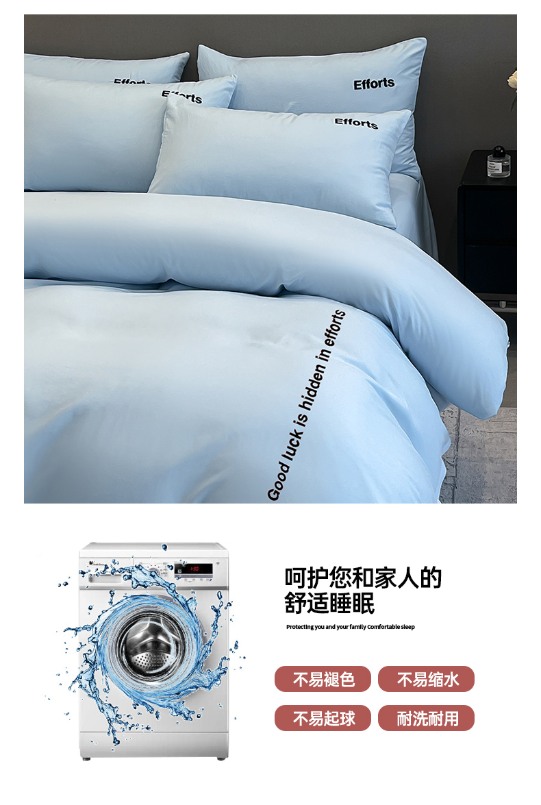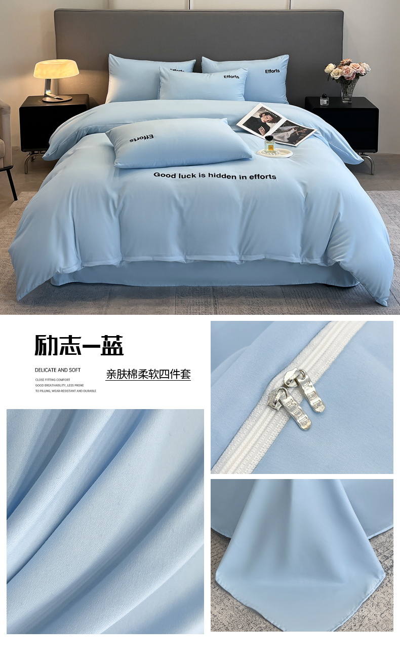 商品名称:经年 2026春夏新款亲肤棉加厚磨毛刺绣四件套-励志 励志-蓝