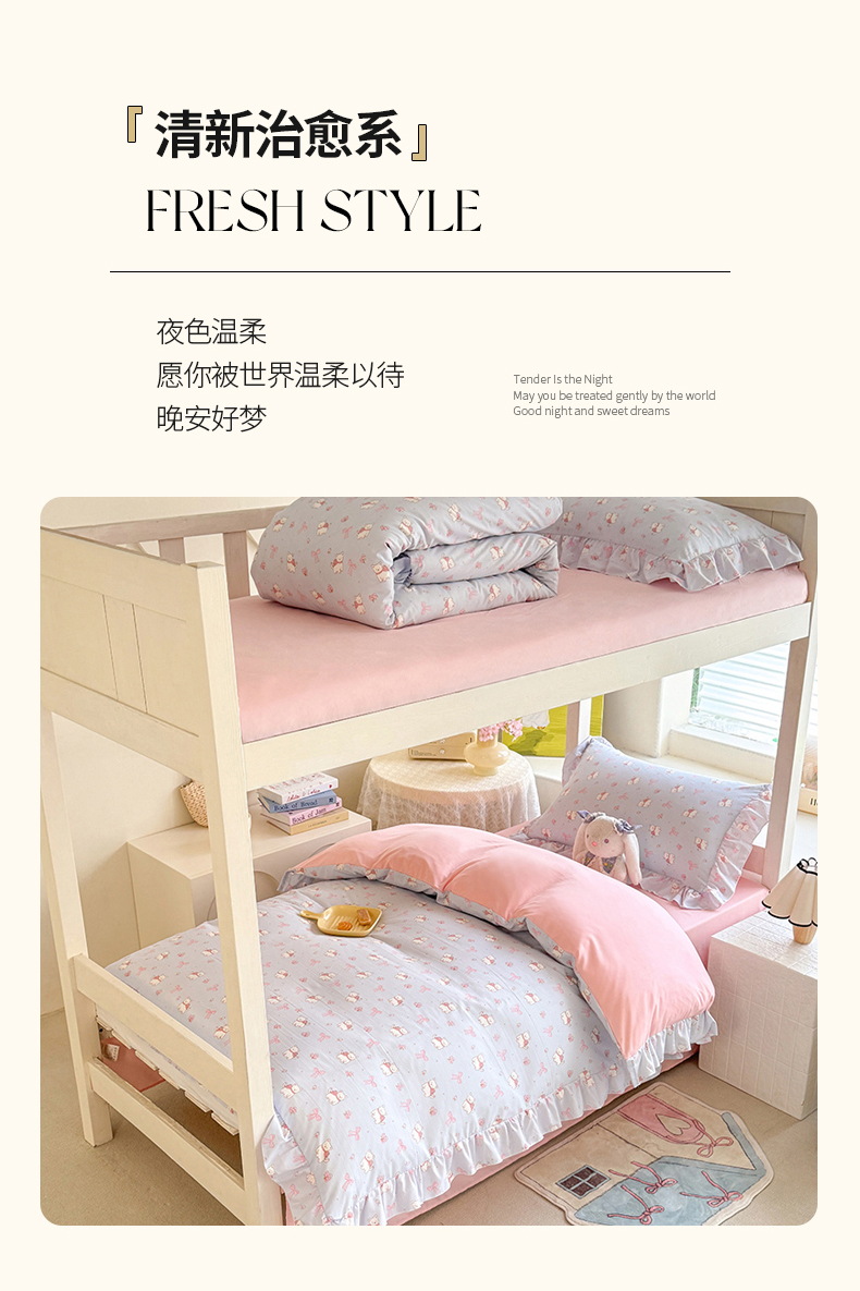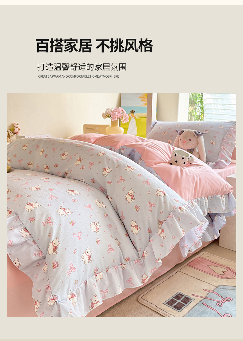当前位置: 91家纺网 > 商品网购 > 床品套件 > 四件套 > 水洗棉四件套 > 经年 2026新款学生季上下铺韩版花边水洗云朵棉学生宿舍三件套四件套 蝴蝶结小狗