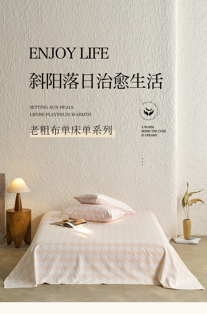 • 91家纺网 家纺一手货源 找家纺 小懒猪 2026新品全棉纯棉老粗布单品床单床单单件凉席席子 千鸟格米