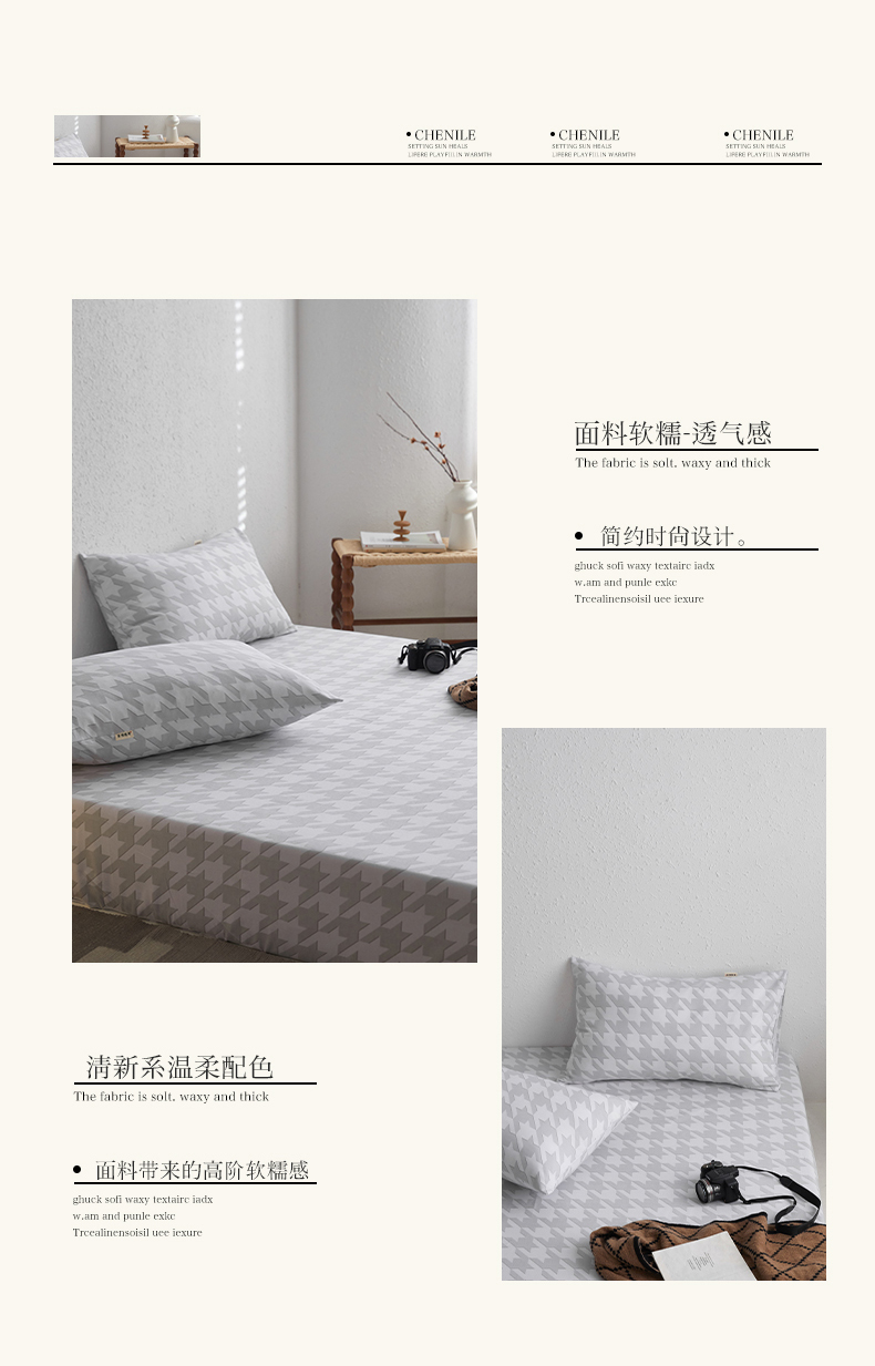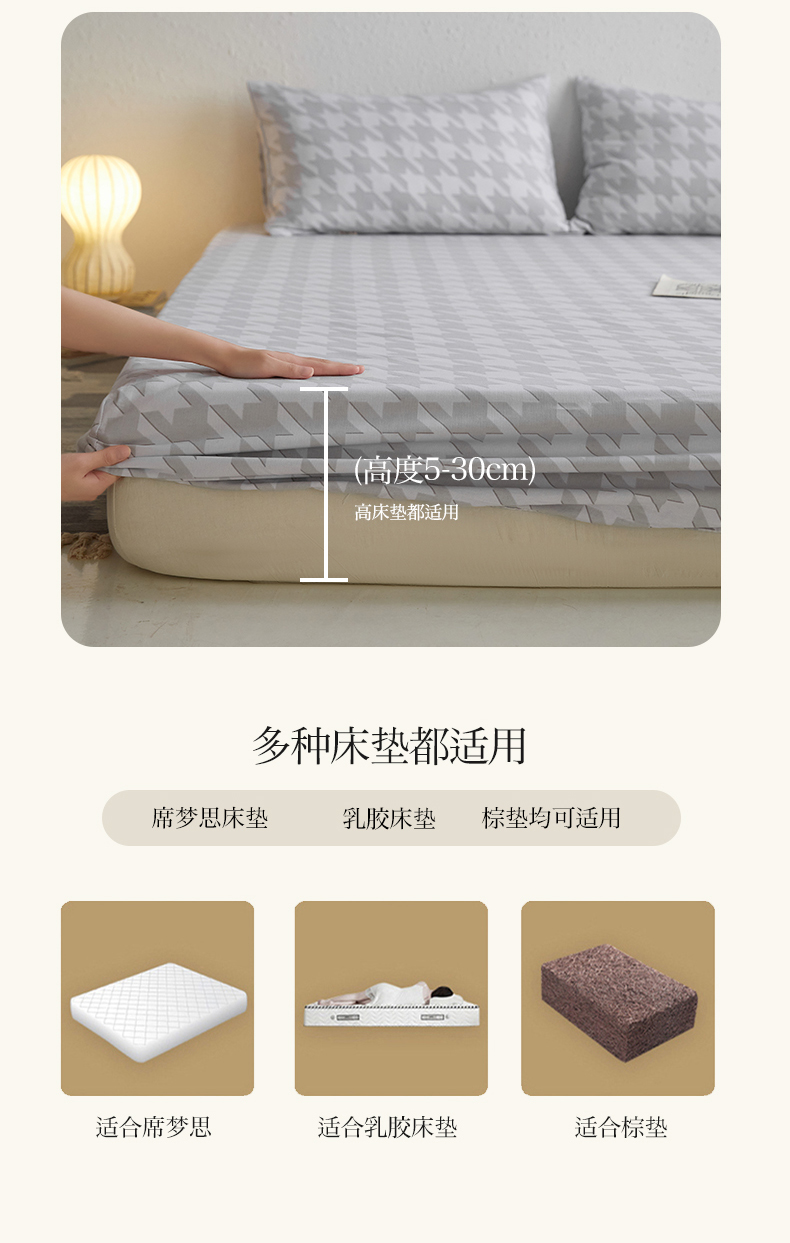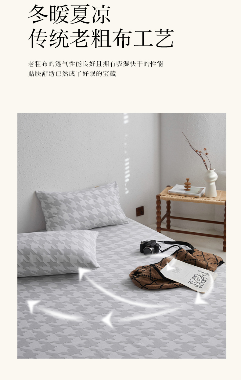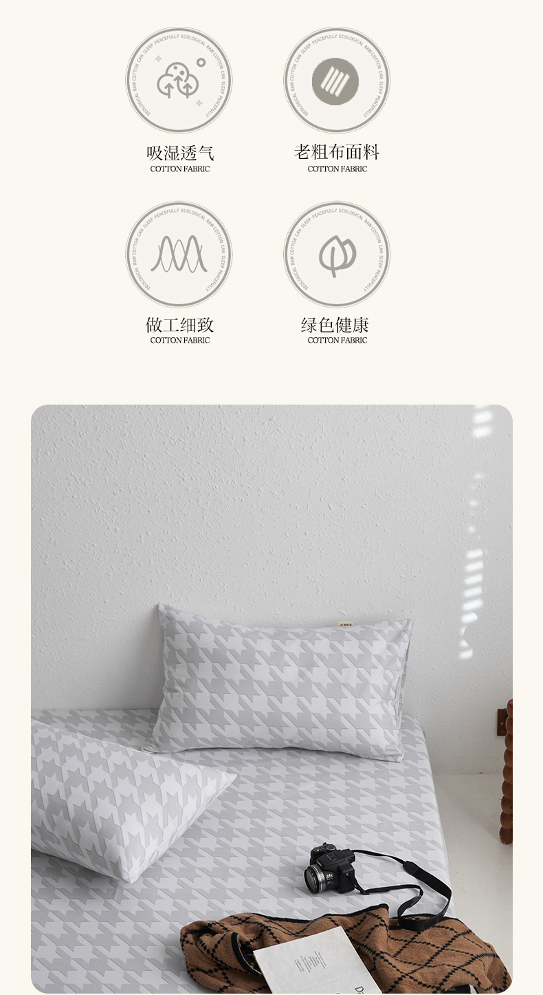 商品名称:小懒猪 2026新品全棉纯棉老粗布单品床笠床笠单件凉席席子 千鸟格灰