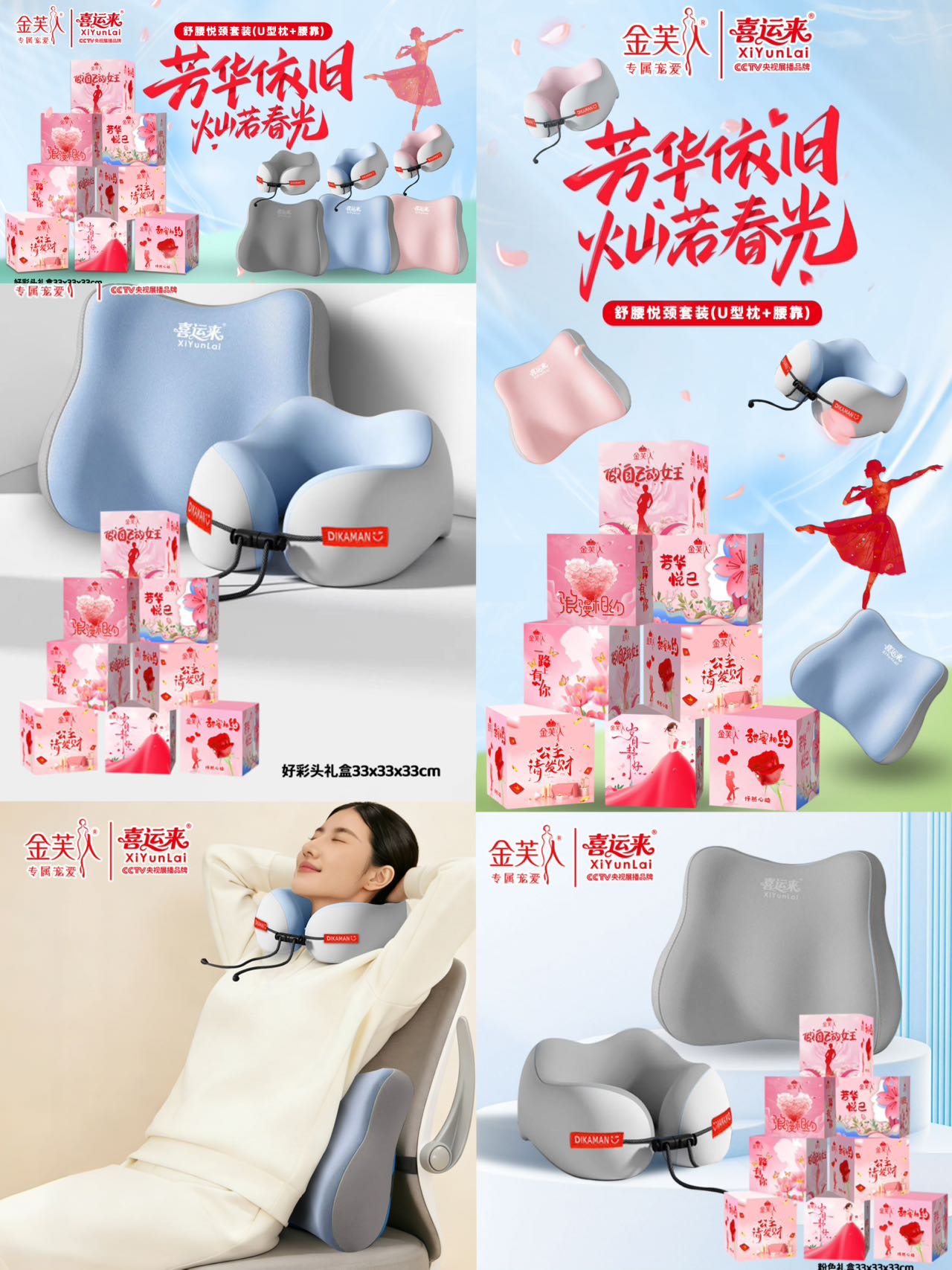 (总)舒腰悦颈两件套u型枕旅行枕便捷收纳双峰护颈旅游飞机火车颈枕办公室护腰靠垫人体工学记忆棉背靠垫护腰抱枕