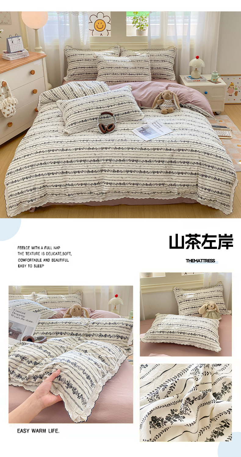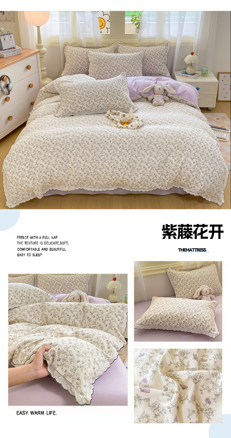 豫见家纺 2026新款A类仿棉云感纱花边四件套 暗香