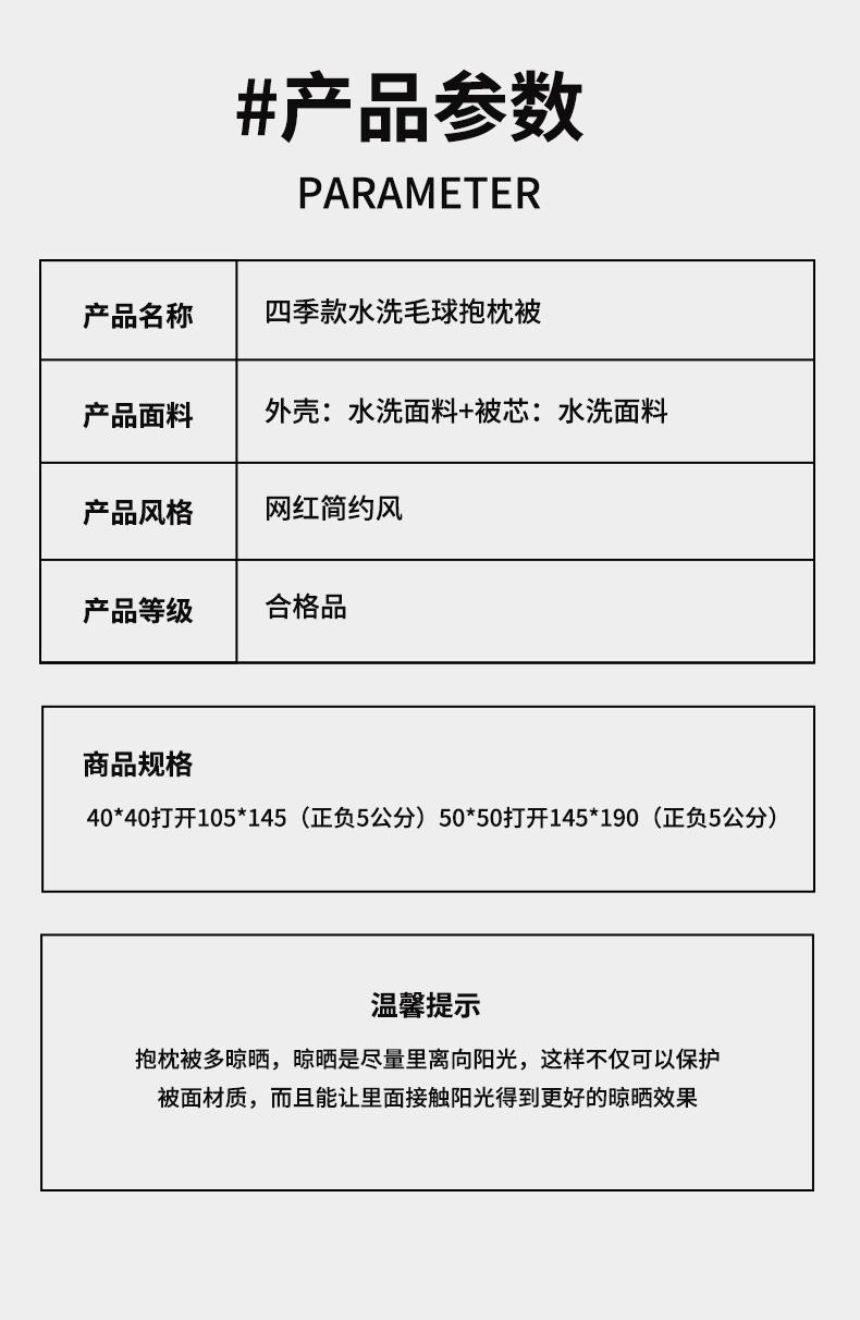 商品名称:(总)古本家居 2026新款四季水洗毛球系列抱枕被