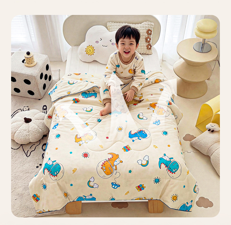 • 91家纺网 家纺一手货源 找家纺 春妮家纺 2026新款卡通幼儿园全棉儿童夏被夏凉被空调被 恐龙假日