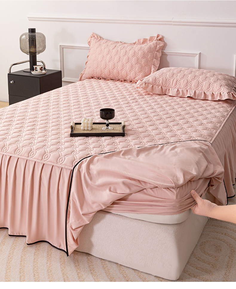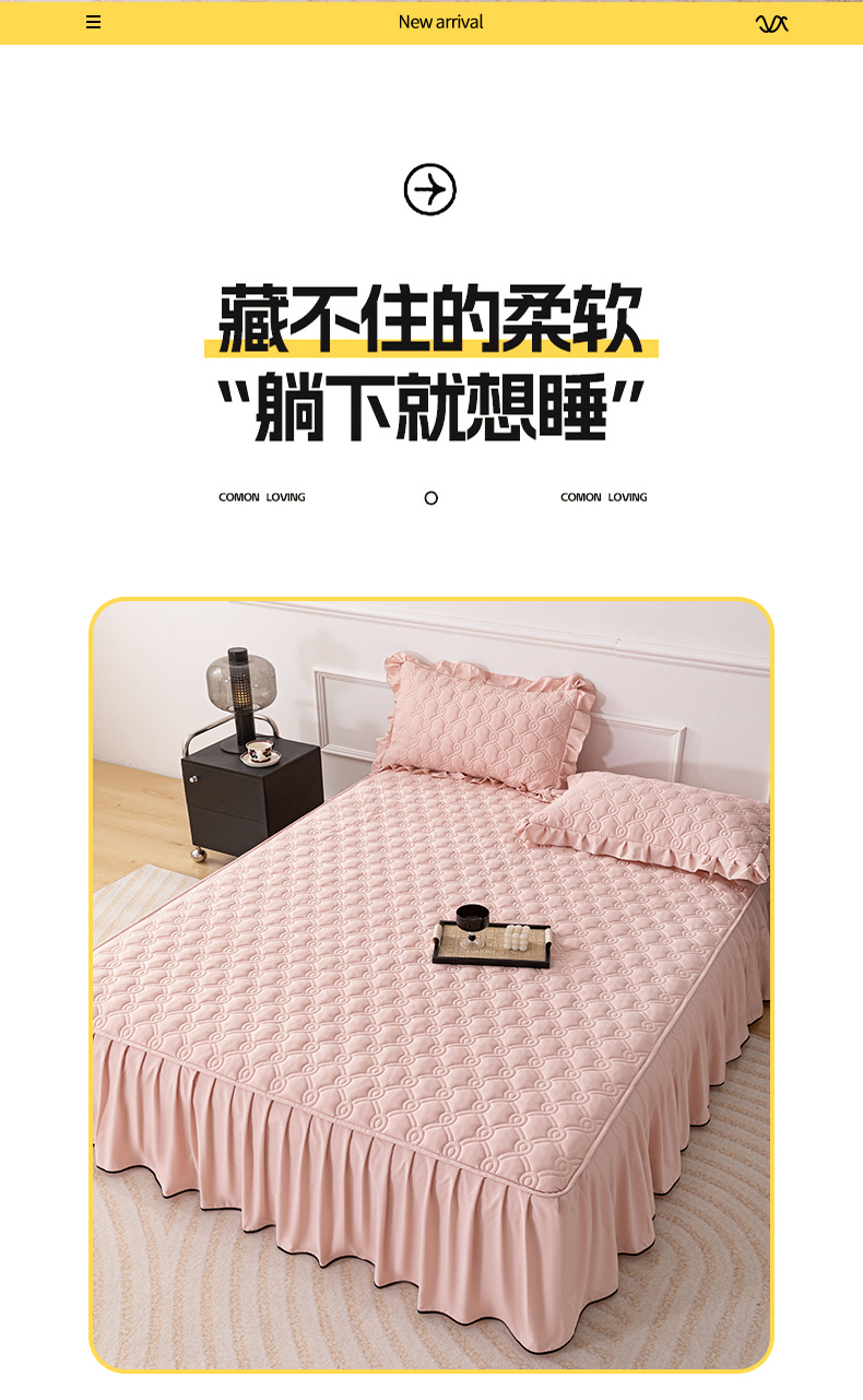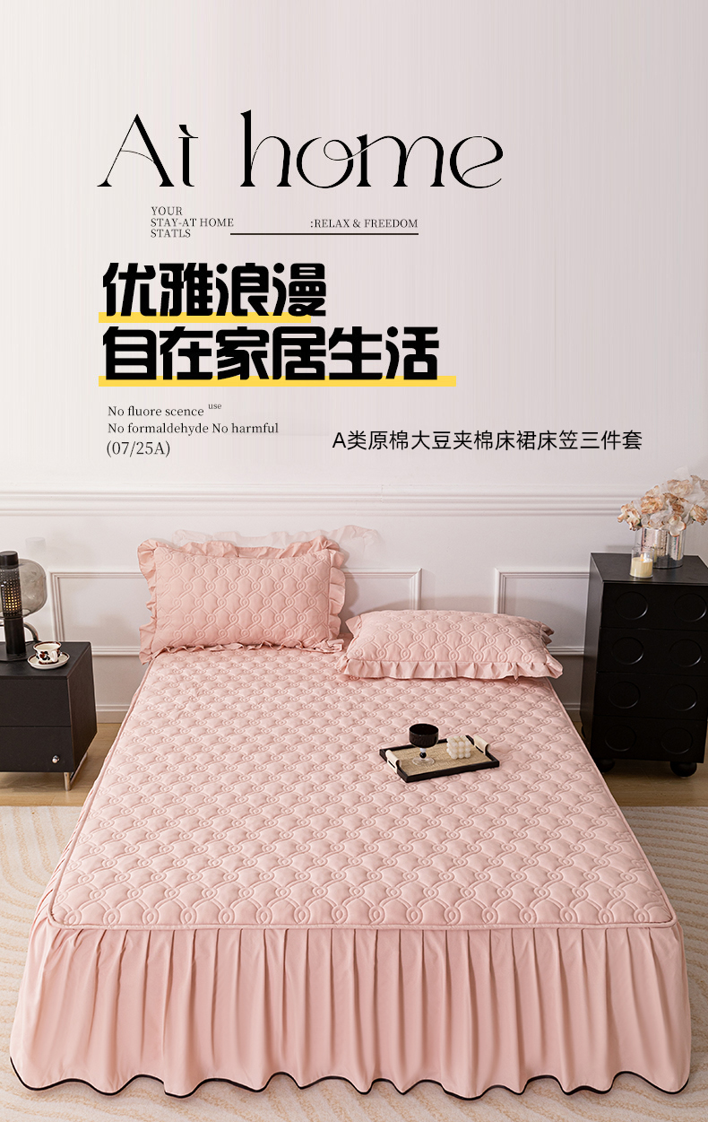 • 91家纺网 家纺一手货源 找家纺 乐蔻家纺 2026春夏新款新款A类原棉大豆夹棉床裙床笠四件套床笠单件-水仙花 水仙花-豆沙粉