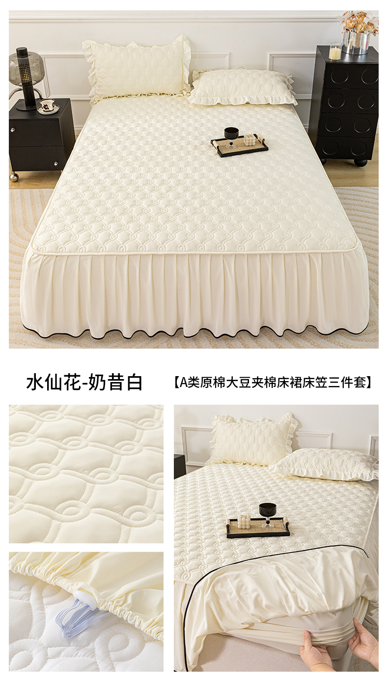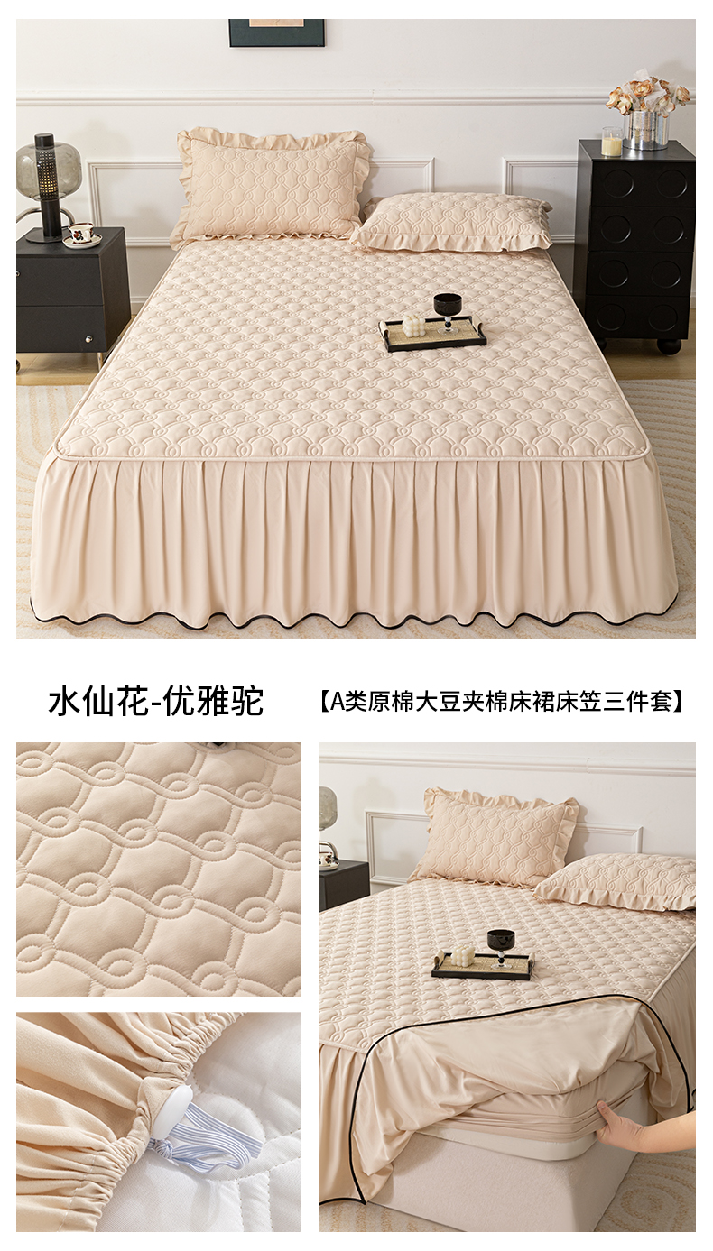 (总)乐蔻家纺 2026春夏新款新款A类原棉大豆夹棉床裙床笠四件套床笠单件-水仙花,水仙花-豆沙粉,水仙花-高级灰,水仙花-奶昔白,水仙花-优雅驼