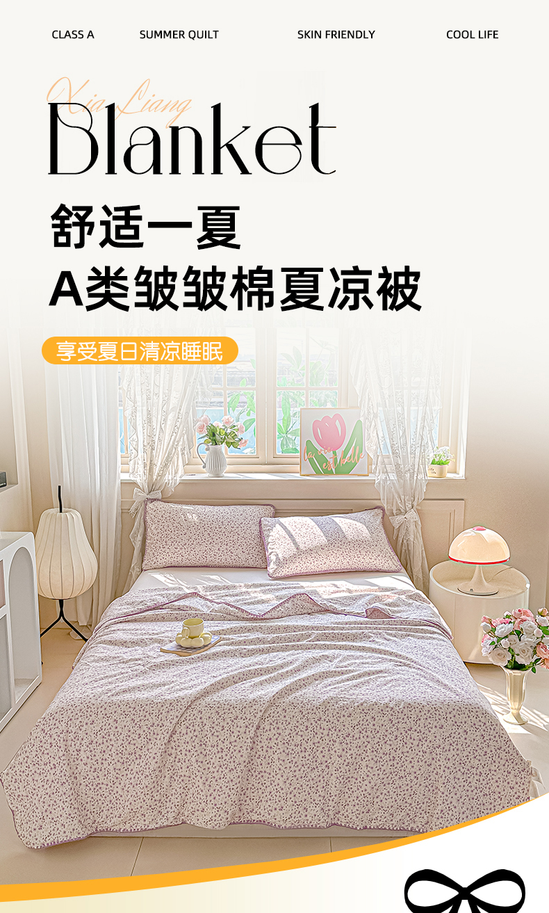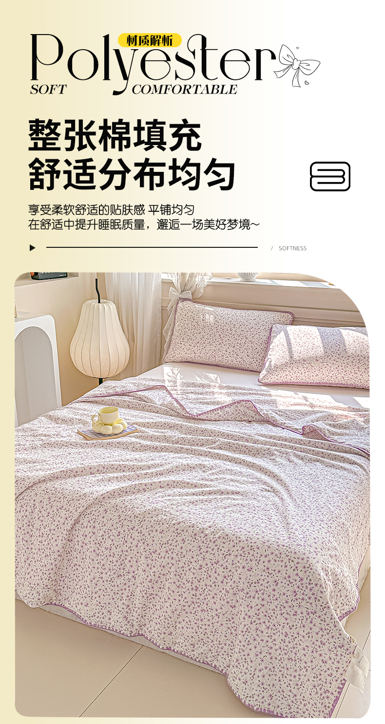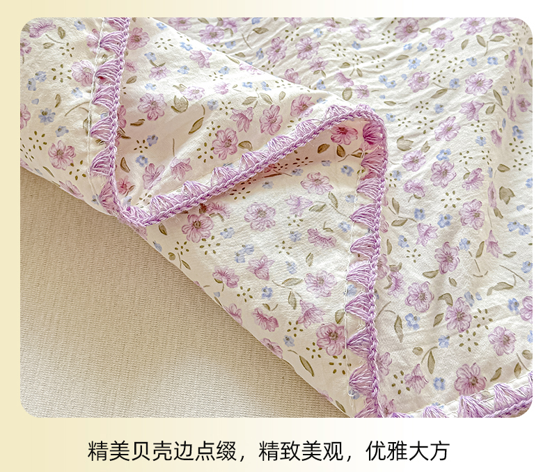 商品名称:归属 2026新款A类小碎花贝壳绣皱皱棉夏被夏凉被空调被 荔椿紫