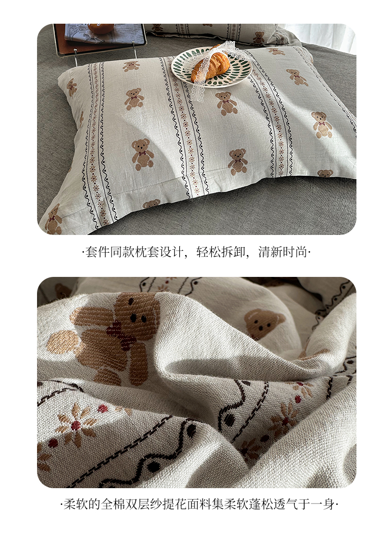 商品名称:(总)萝莉家纺 2026新款全棉纯棉色织双层纱提花四件套