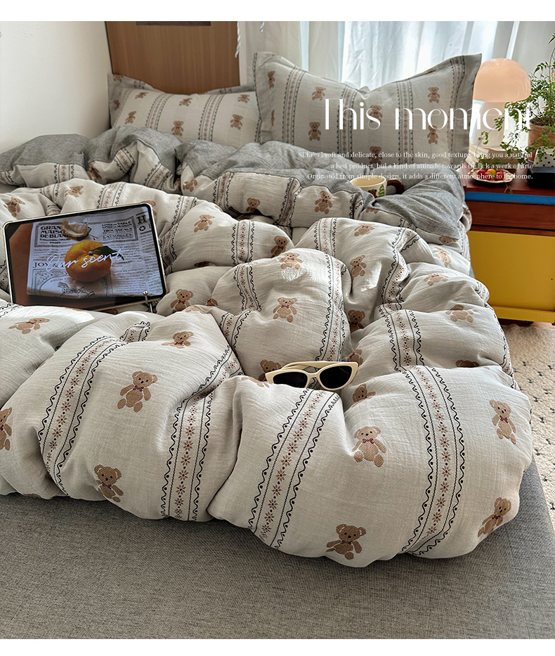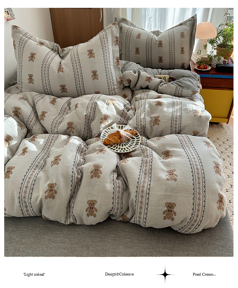 (总)萝莉家纺 2026新款全棉双层纱四件套,爱心猫咪,波点小猫,开心的一天,快乐大家族,魔术的梦想,森林兔,贪吃的猫,小人国,音乐派对