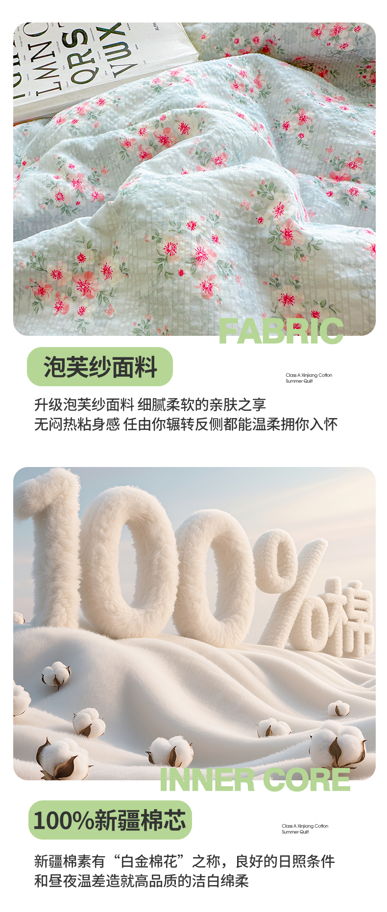 魅图家纺 2026新款泡芙纱新疆棉花夏被 夜寄梨诗