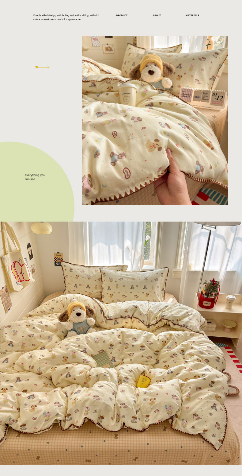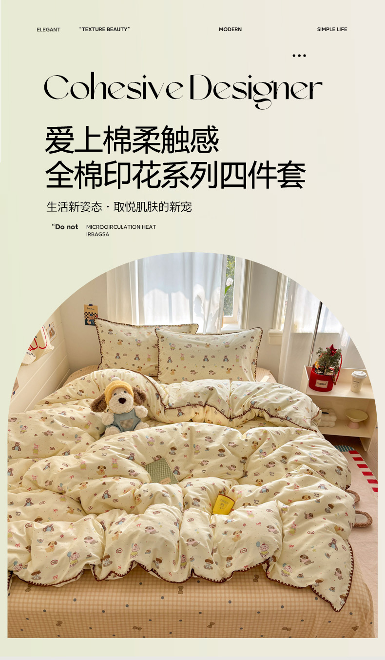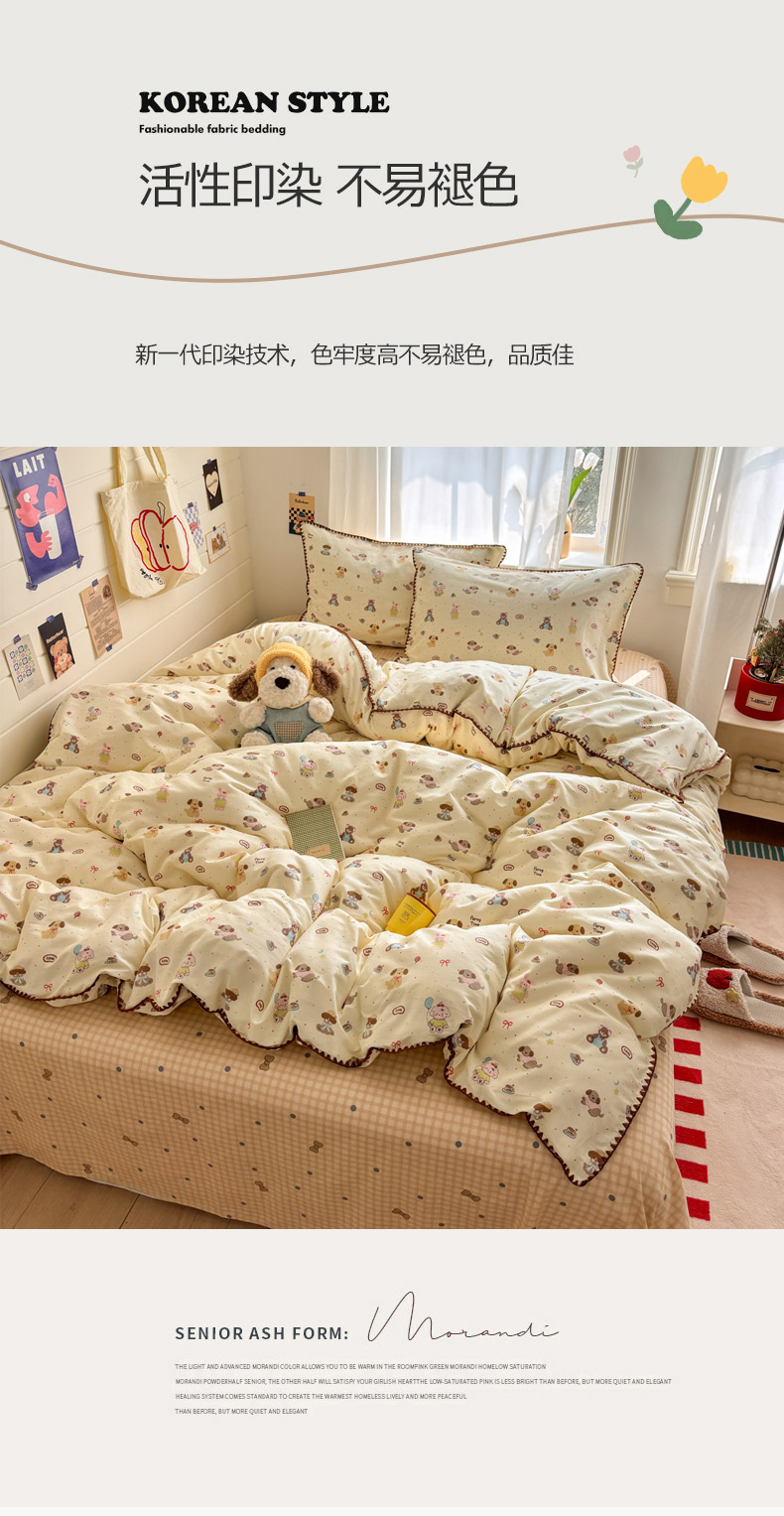 当前位置: 91家纺网 > 商品网购 > 床品套件 > 四件套 > 全棉普通四件套 > 慕尚家纺 2026春夏新款全棉纯棉印花三角针四件套 气球小狗