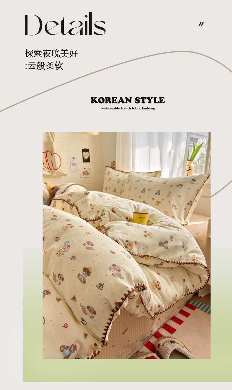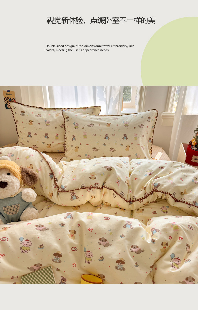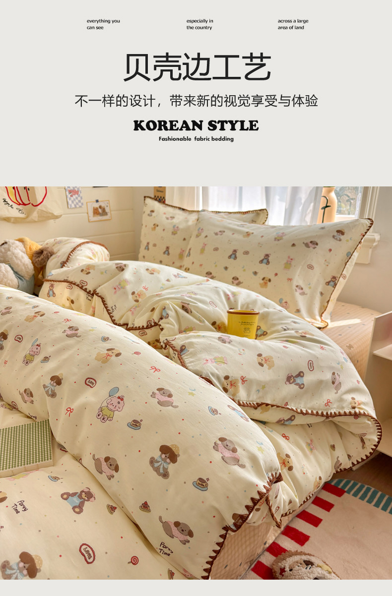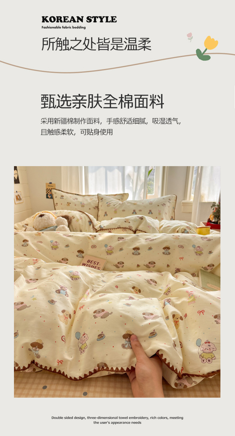 当前位置: 91家纺网 > 商品网购 > 床品套件 > 四件套 > 全棉普通四件套 > 慕尚家纺 2026春夏新款全棉纯棉印花三角针四件套 气球小狗