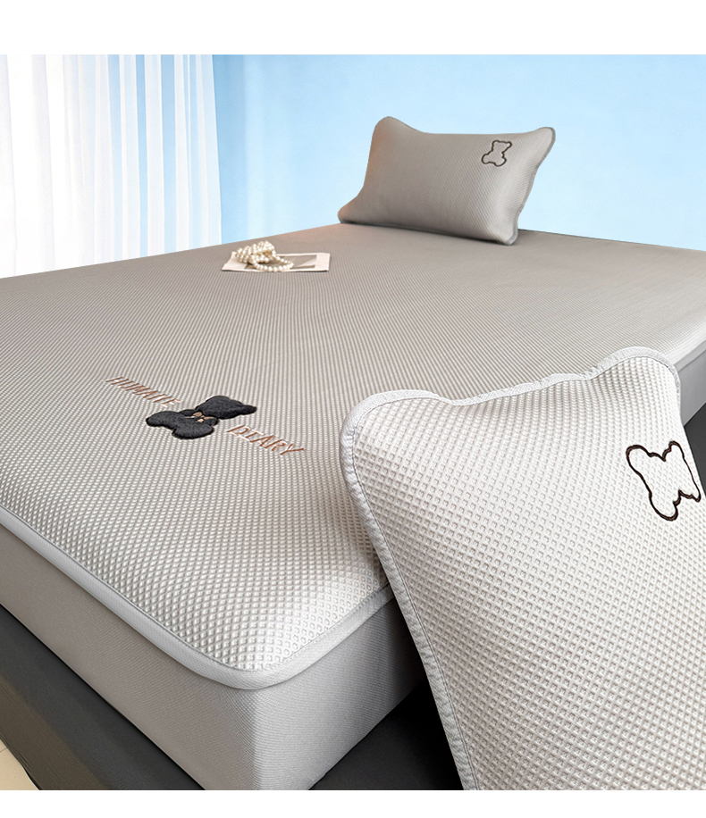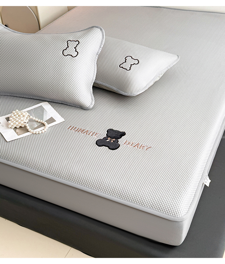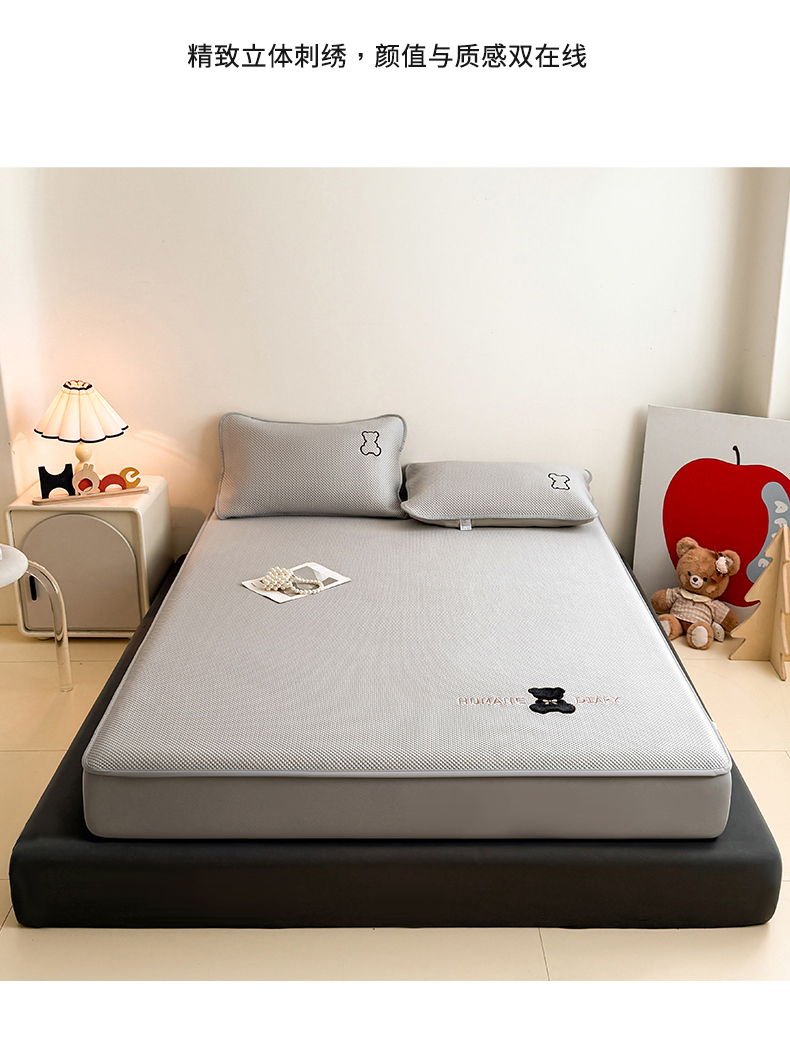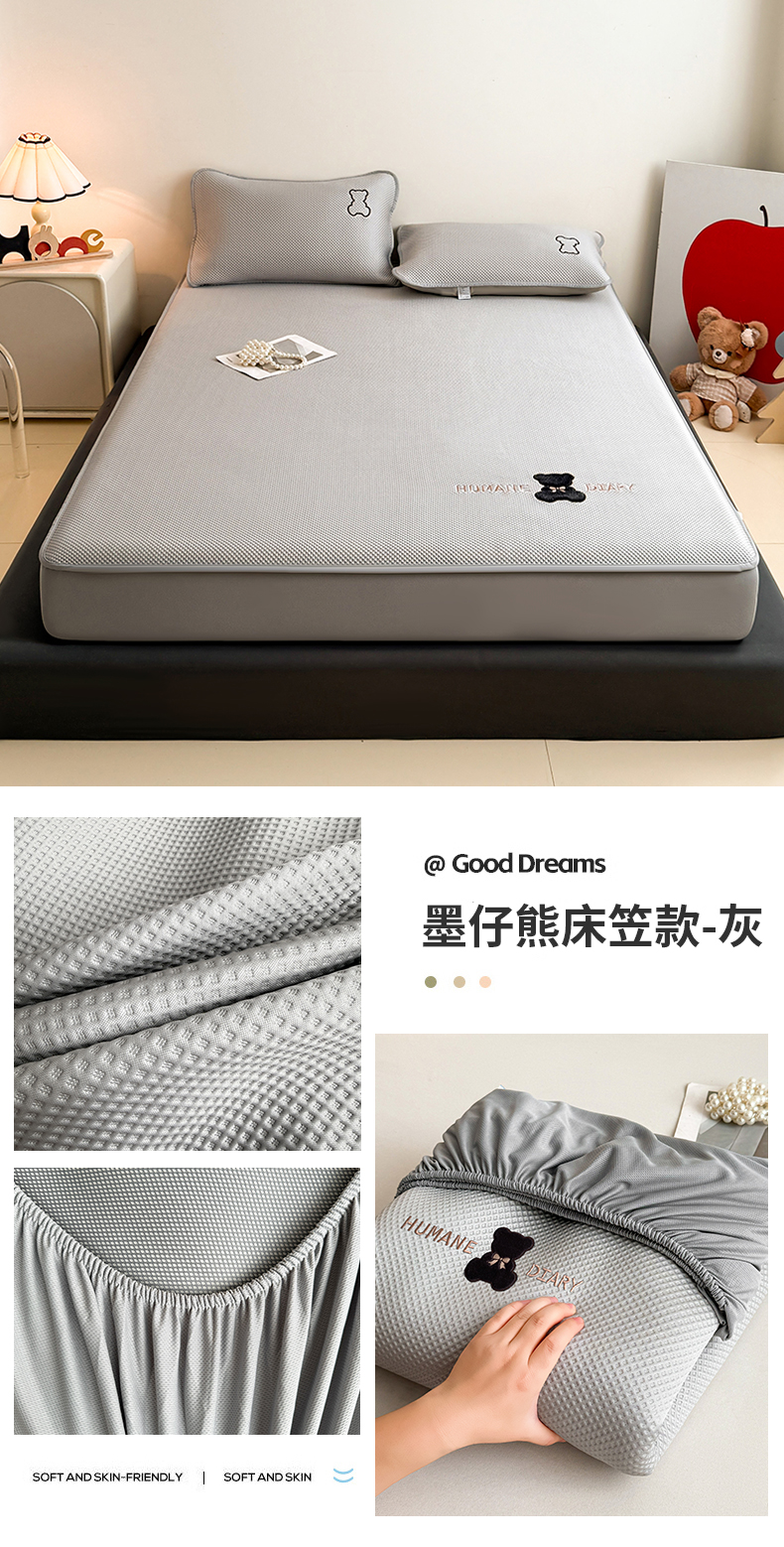 (总)雯豆家纺 2026新款PE中分子绣花床笠三件套夏季凉感豆豆席子床罩-墨仔熊,墨仔熊床笠款-灰,墨仔熊床笠款-蓝,墨仔熊床笠款-粉,墨仔熊床笠款-绿