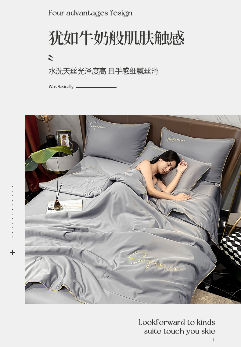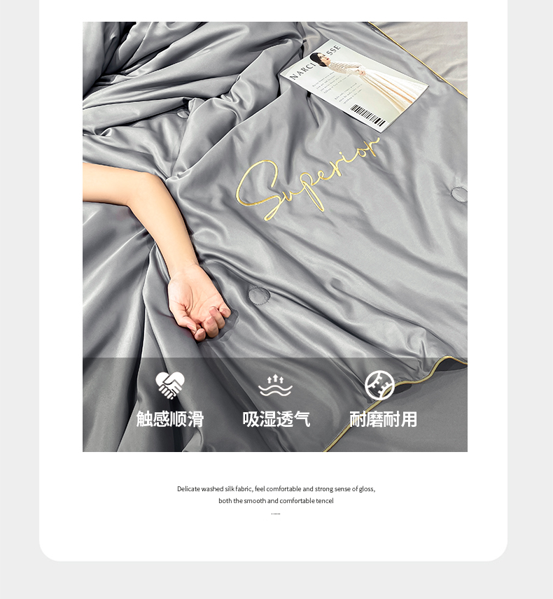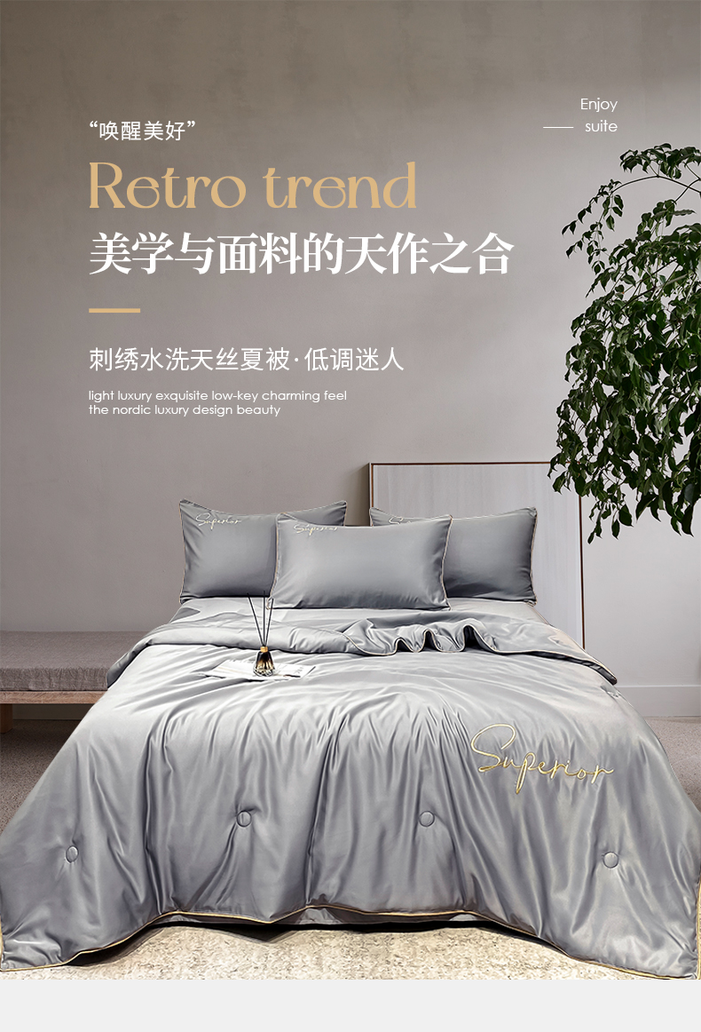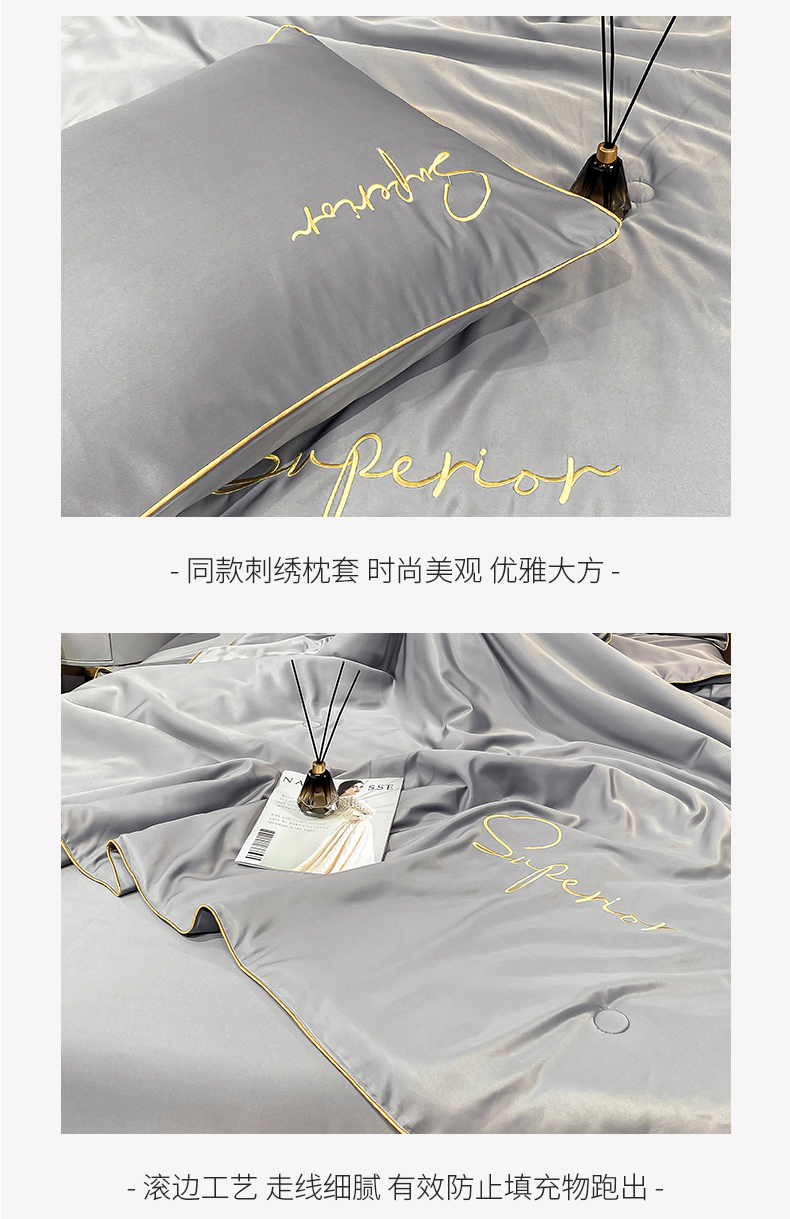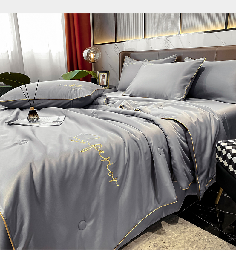 • 91家纺网 家纺一手货源 找家纺 吾诺家居 2026新款字母刺绣水洗天丝夏被夏凉被空调被四件套-字母 字母经典灰