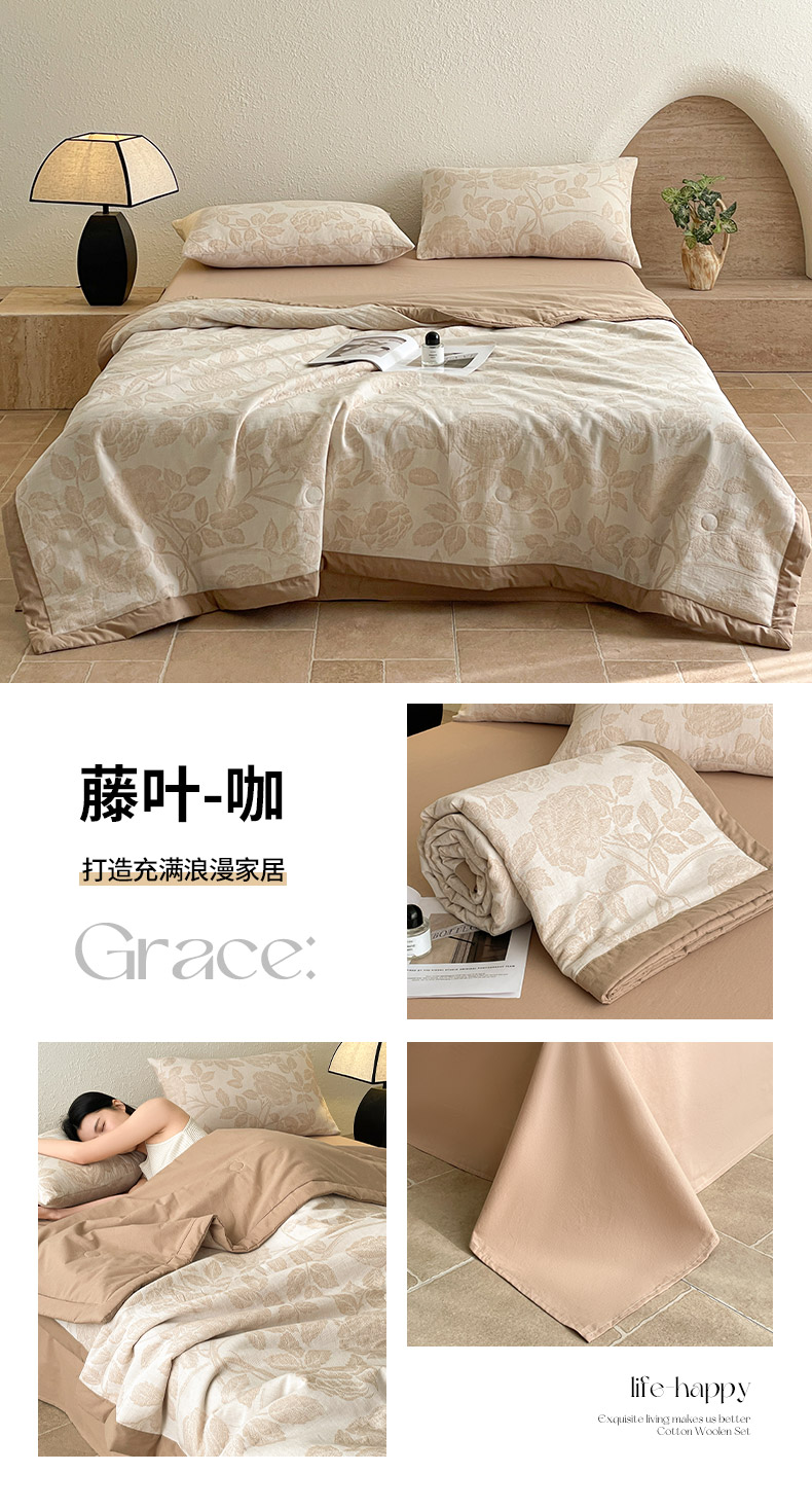 (总)吾诺家居 2026新款全棉色织提花三层纱夏被夏凉被空调被-华美,波点-灰,芳菲-咖,花影-绿,简森-灰,恋恋花开,萌宝,梦幻花园-粉,梦幻花园-灰,太阳花,藤叶-咖,香水繁花-绿