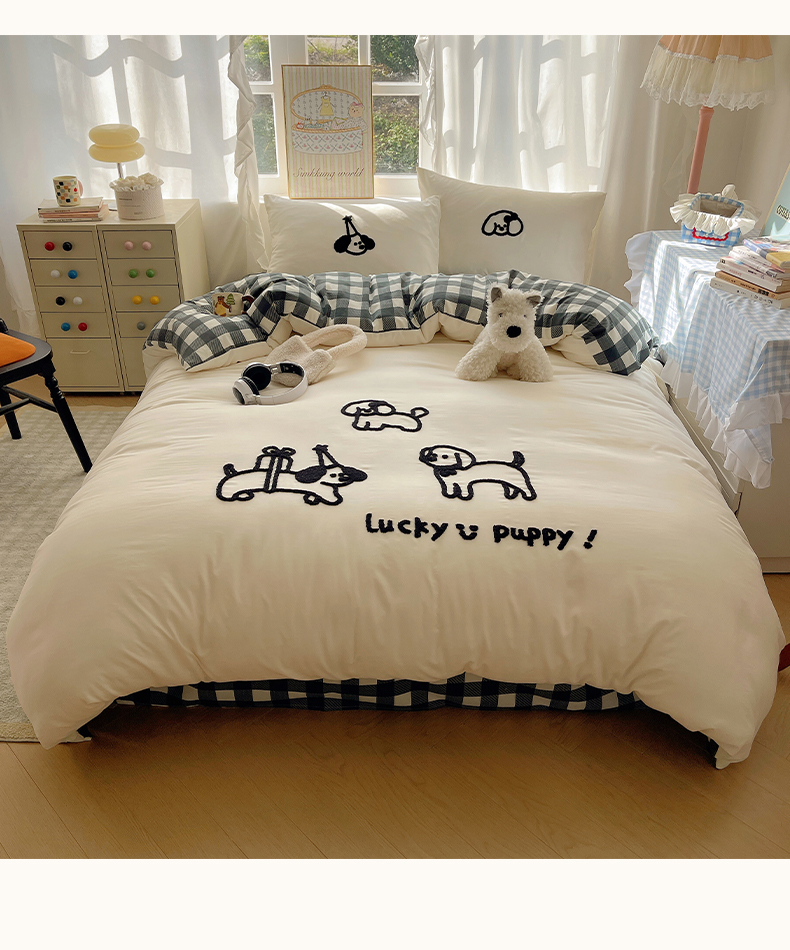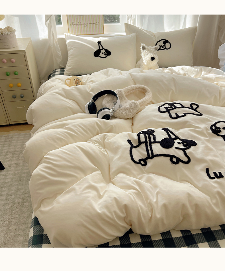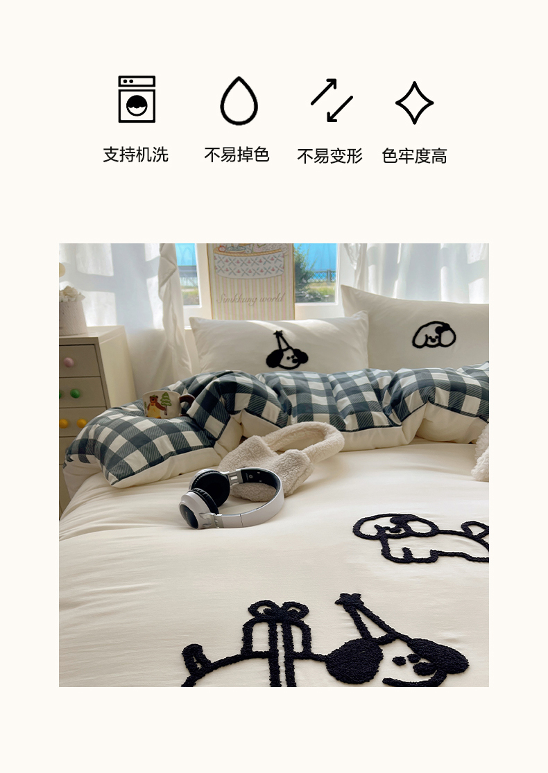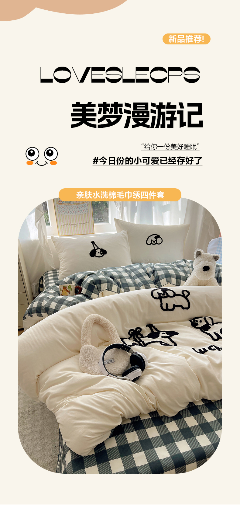 当前位置: 91家纺网 > 商品网购 > 床品套件 > 四件套 > 其它四件套 > 韩都家居 2026春夏新款亲肤舒适毛巾绣四件套(包含买家秀原图) 线条狗
