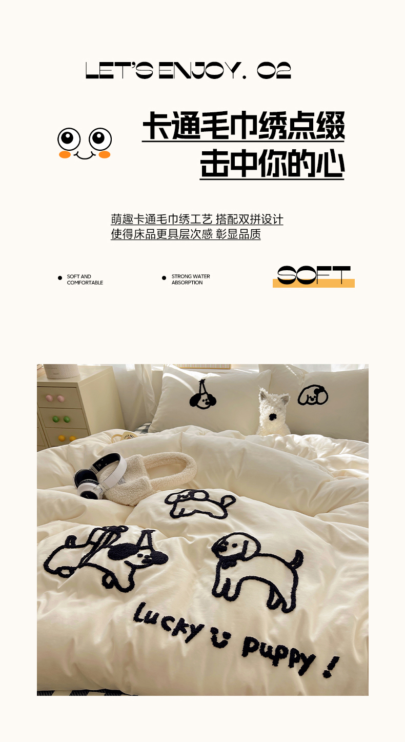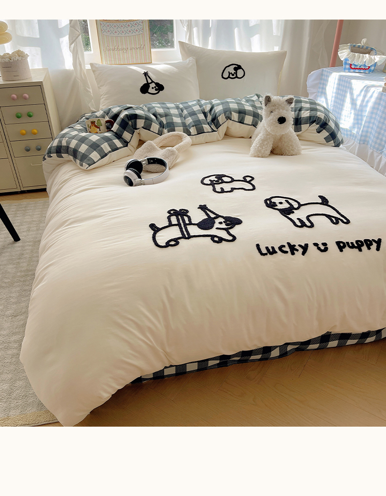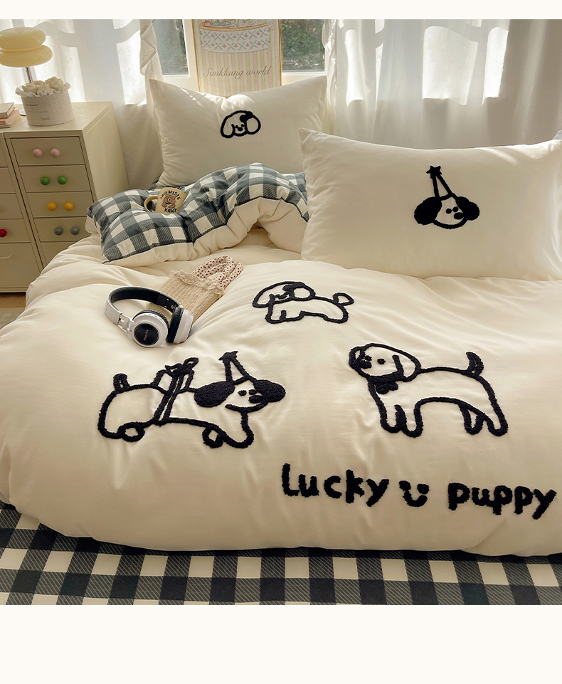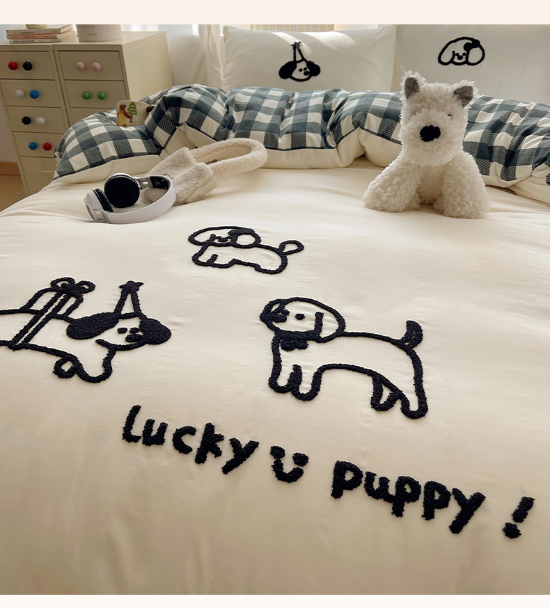 当前位置: 91家纺网 > 商品网购 > 床品套件 > 四件套 > 其它四件套 > 韩都家居 2026春夏新款亲肤舒适毛巾绣四件套(包含买家秀原图) 线条狗